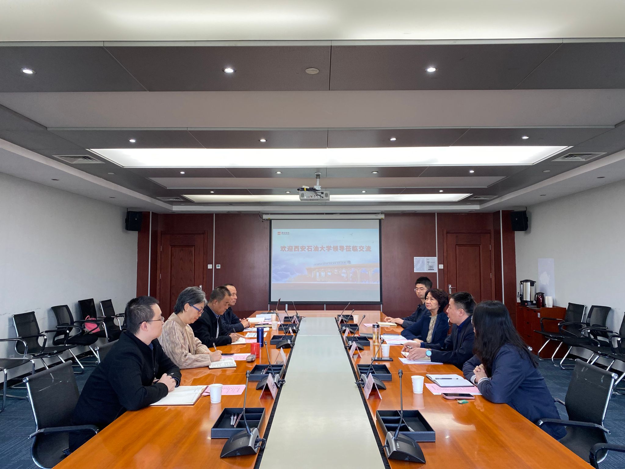 陳紅對(duì)程永清一行來(lái)訪(fǎng)表示熱烈歡迎,并介紹了公司的基本概況、主營(yíng)業(yè)務(wù)和企業(yè)文化建設(shè)情況。她表示,今年6月校企雙方已在“城市記憶·地鐵遇見(jiàn)畢業(yè)季”大學(xué)生畢業(yè)作品展活動(dòng)中建立了深厚的合作基礎(chǔ),活動(dòng)反響熱烈,石油學(xué)子的藝術(shù)節(jié)目和專(zhuān)業(yè)作品令人印象深刻。她強(qiáng)調(diào),西安軌道交通集團(tuán)歷來(lái)重視與西安高校合作,其中以地鐵為平臺(tái)、依托文化長(zhǎng)廊,聯(lián)合高校展示科技創(chuàng)新和文化特色是近年新穎的策展方式,讓市民游客在穿梭的地鐵中可以感受城市歷史文化底蘊(yùn),有著獨(dú)特的策展思路和優(yōu)勢(shì)。西安石油大學(xué)辦學(xué)特色鮮明,始終堅(jiān)持服務(wù)國(guó)家能源戰(zhàn)略需求和陜西經(jīng)濟(jì)社會(huì)發(fā)展,取得了一系列引人注目的發(fā)展成就,集團(tuán)將全力支持本次合作,希望雙方借此機(jī)會(huì)能進(jìn)一步加強(qiáng)文化交流、合力打造具有城市特色的文化品牌矩陣,為全省加快構(gòu)建支撐有力的文化建設(shè)體系、推進(jìn)文化自信自強(qiáng)提供有力支撐。