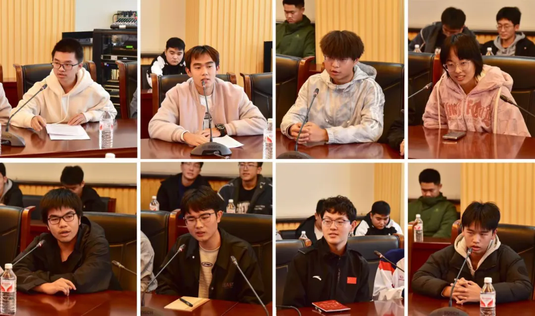 交流會氛圍輕松開放,學(xué)生代表們暢所欲言,表達(dá)了對學(xué)校培養(yǎng)和關(guān)心的感謝,并分別圍繞專業(yè)學(xué)習(xí)、校園文化、校園生活等方面提出了問題和建議。學(xué)生處、教務(wù)處等部門負(fù)責(zé)人及院系負(fù)責(zé)人一一回應(yīng),讓同學(xué)們感受到學(xué)校深切真誠的關(guān)懷。