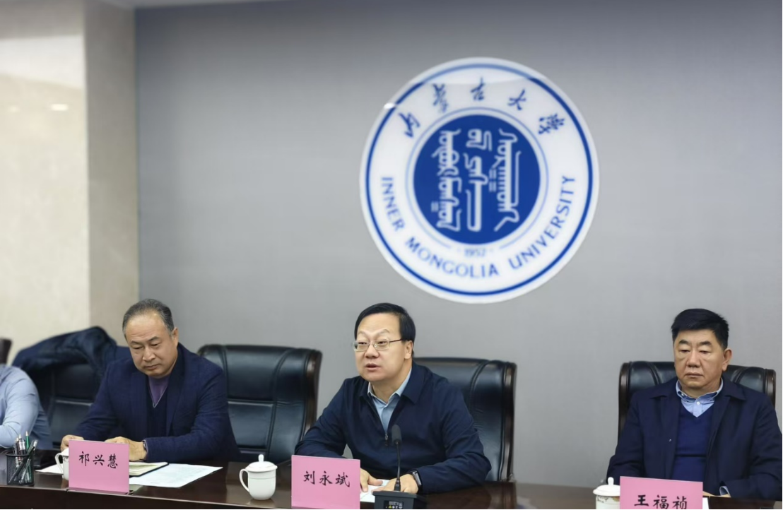 在內蒙古大學走訪調研期間,內蒙古大學副校長劉永斌對蘇文甫一行表示熱烈歡迎,并介紹了內蒙古大學辦學情況、學科建設特色、機構設置及功能定位等情況。
