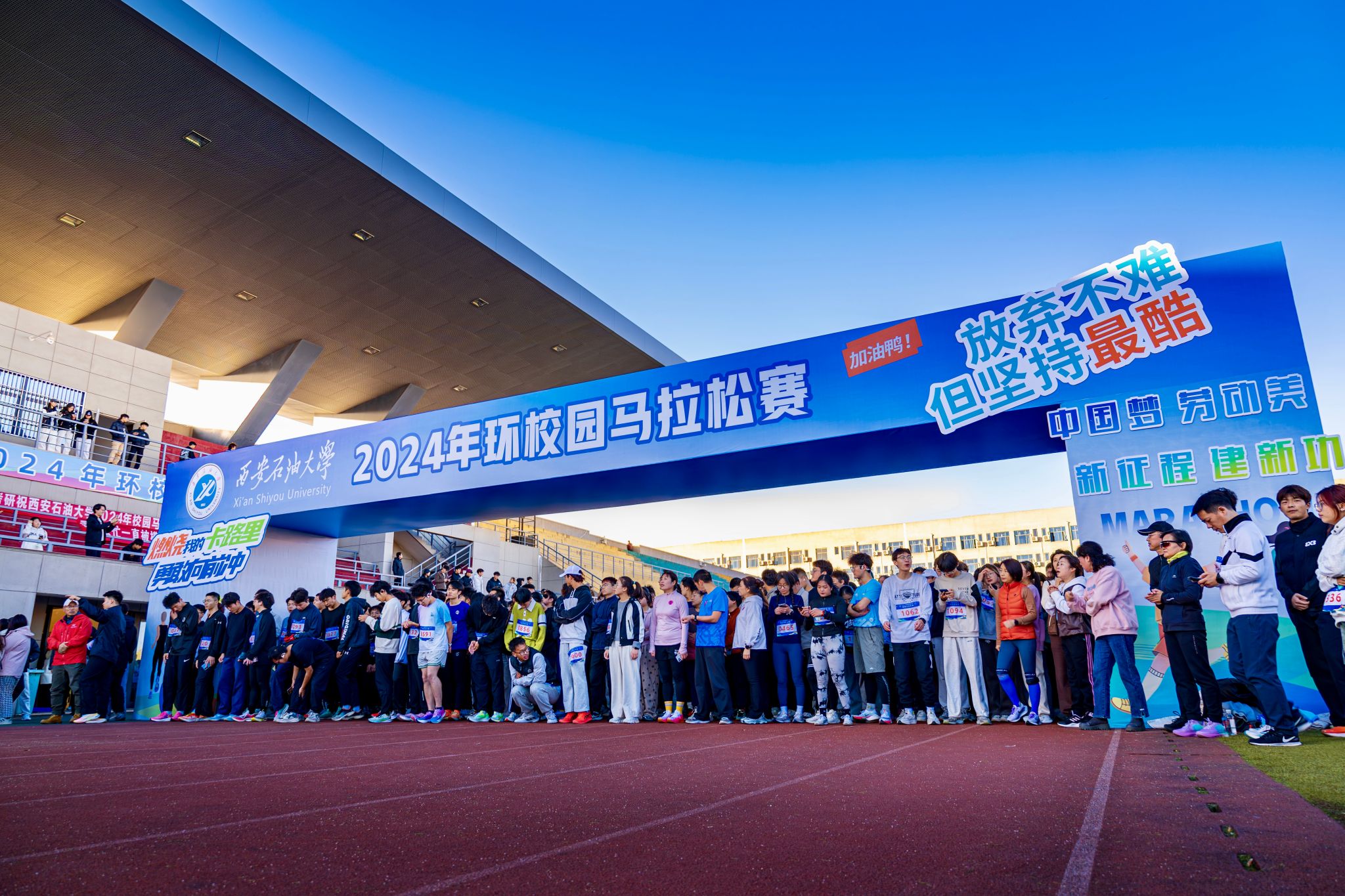 本次馬拉松賽由西安石油大學(xué)校體育運(yùn)動委員會主辦,體育學(xué)院、校工會承辦,比賽采用環(huán)形賽道形式進(jìn)行,整圈環(huán)校距離約為5公里。比賽分為學(xué)生組和教職工組,1610余名學(xué)生和80余名教師共同奔跑在冬日的校園,在賽道上揮灑汗水,感受運(yùn)動的魅力,體會堅(jiān)持的力量。