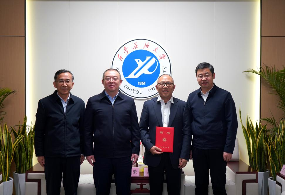 儀式結束后,校黨委書記常江、校長王進富、校黨委副書記張木在行政樓會客廳熱情接見了何榮校友一行,并為何榮舉行了一個簡短而莊重的聘任儀式,頒發(fā)了“專業(yè)學位碩士研究生兼職指導教師”的聘書。學校黨委組織部、校友工作與合作交流處、經濟管理學院負責人共同見證了這一重要時刻,這不僅是對何榮校友在業(yè)界卓越成就的認可,更是對其深厚學術底蘊和無私奉獻教育事業(yè)的深深敬意。