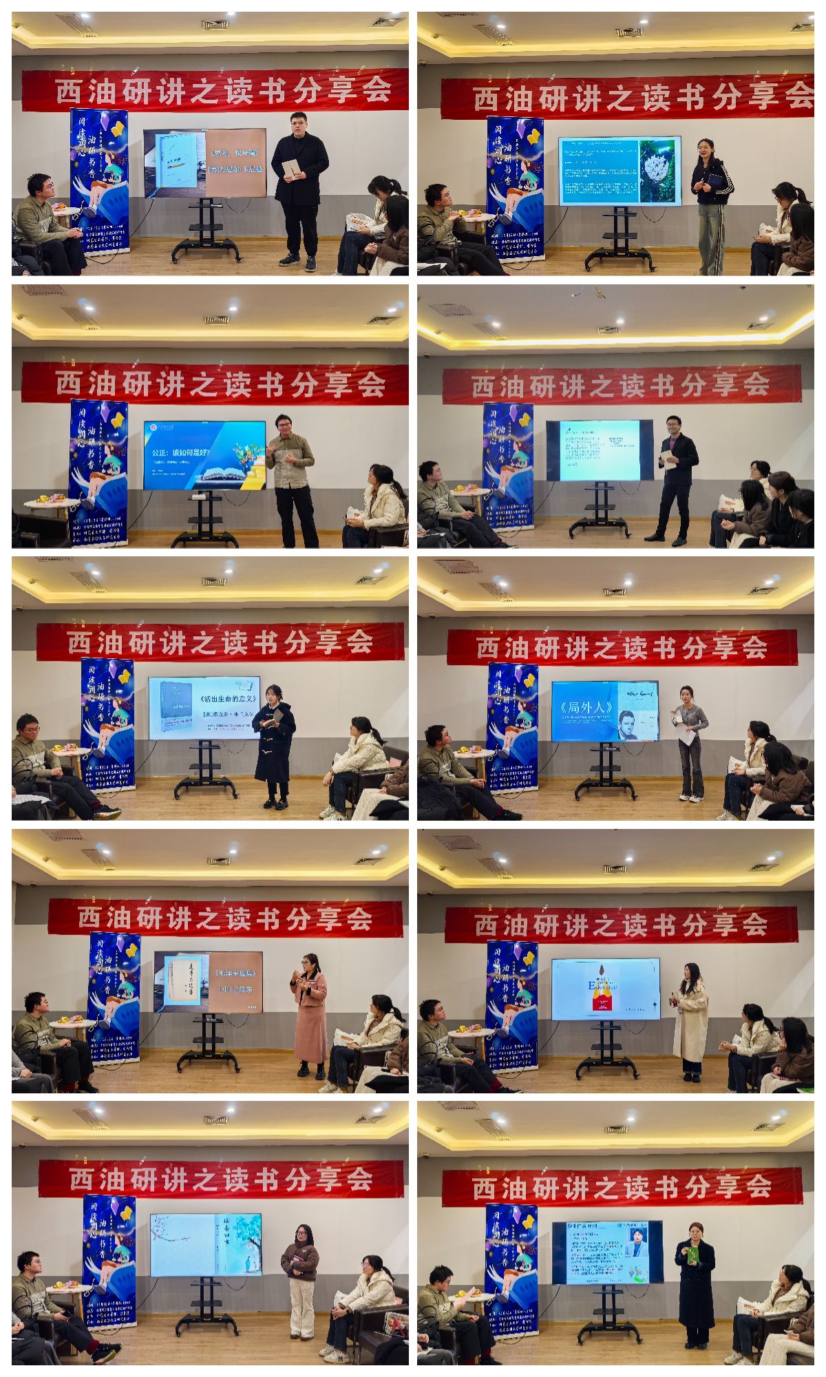 “西油研講”是研究生工作部推出的一項(xiàng)研究生創(chuàng)新教育平臺(tái),“研講”將聚焦研究生發(fā)展需求,精心設(shè)計(jì)服務(wù)菜單和分享內(nèi)容,開展涵蓋思政教育、學(xué)術(shù)科研、創(chuàng)新實(shí)踐、校園生活、職業(yè)規(guī)劃和心理健康等各個(gè)方面,旨在激勵(lì)研究生自強(qiáng)不息、砥礪奮進(jìn)、刻苦鉆研,提升知識(shí)創(chuàng)新和實(shí)踐創(chuàng)新能力。此次讀書分享會(huì)是“西油研講”首期活動(dòng),吸引了眾多研究生的積極參與,展現(xiàn)了我校研究生積極向上的精神風(fēng)貌和深厚的學(xué)術(shù)底蘊(yùn)。