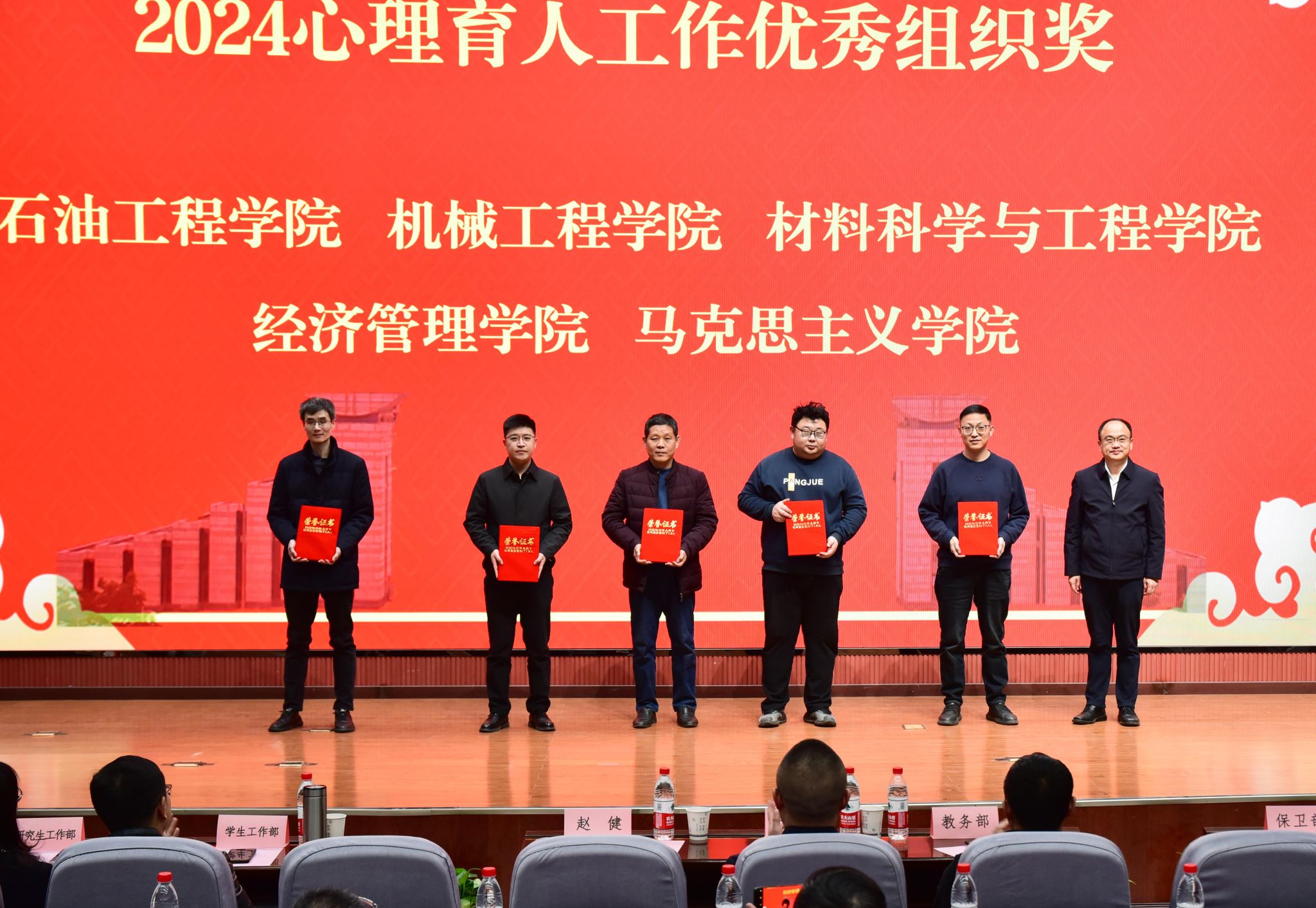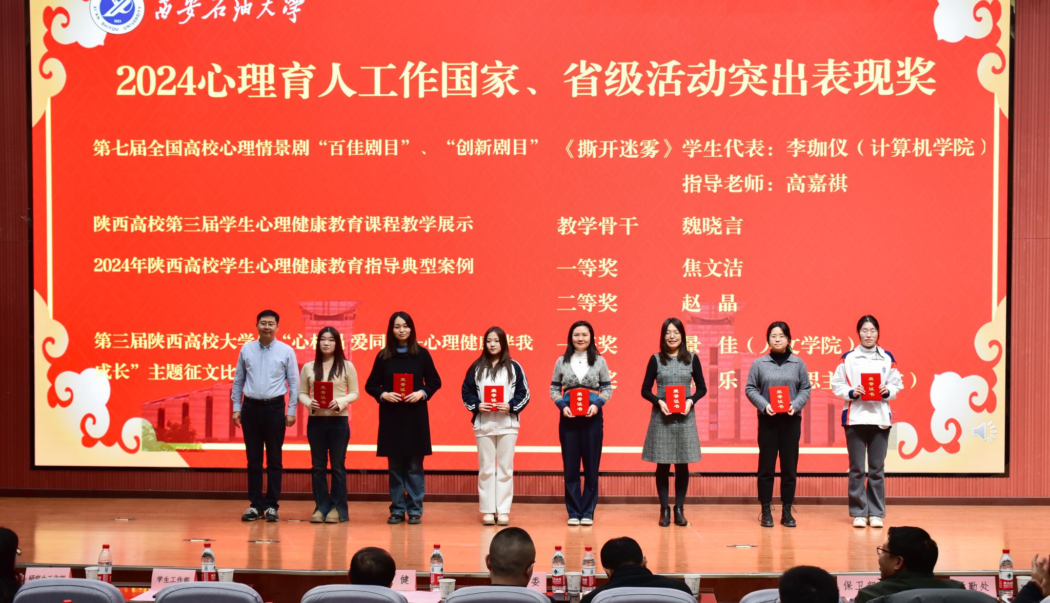學(xué)生工作部部長(zhǎng)王亮宣讀了我校師生在2024年國家、省級(jí)心理健康教育工作中的獲獎(jiǎng)情況以及《關(guān)于西安石油大學(xué)2024心理育人工作先進(jìn)單位和個(gè)人的表彰決定》。與會(huì)領(lǐng)導(dǎo)為獲獎(jiǎng)個(gè)人及集體頒獎(jiǎng)。