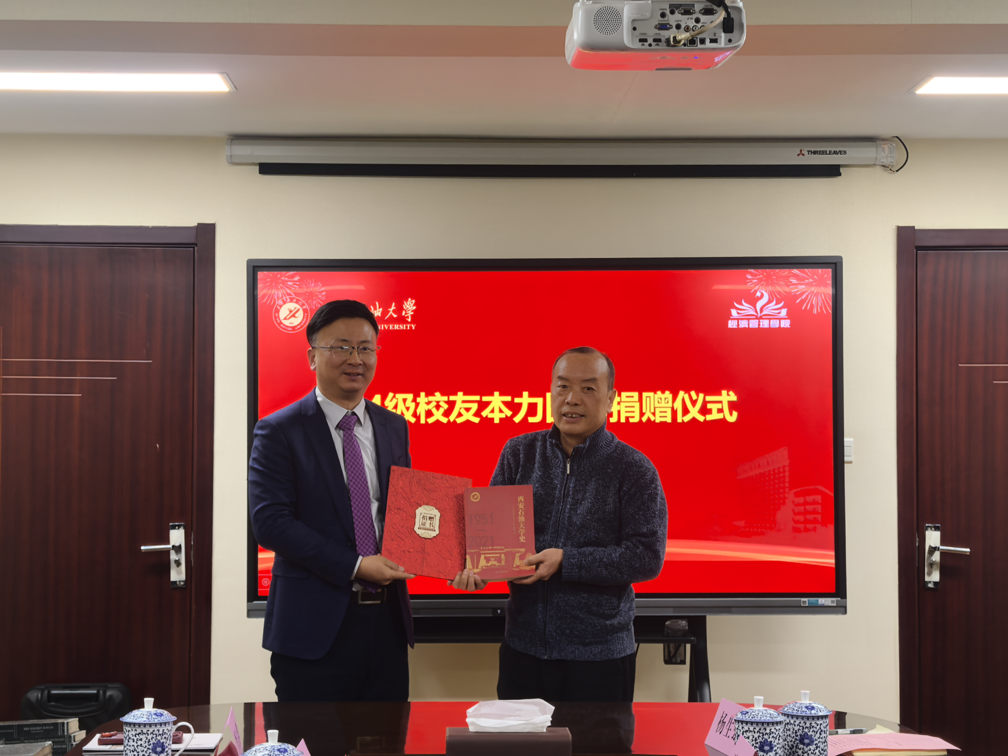 王君萍接受圖書捐贈(zèng),談建勤向本力頒發(fā)捐贈(zèng)證書并贈(zèng)送校史。座談會(huì)上,本力與經(jīng)管學(xué)院黨委書記談建勤,院長(zhǎng)王君萍,教師代表聶亦惠、王嵐、程俊、黃莉、李立群等老師進(jìn)行親切地交流座談,回顧在學(xué)校的學(xué)習(xí)時(shí)光,共敘師生之情。時(shí)光流逝,情意未變,最后本力表達(dá)對(duì)于母校、對(duì)老師辛勤培養(yǎng)的感謝。