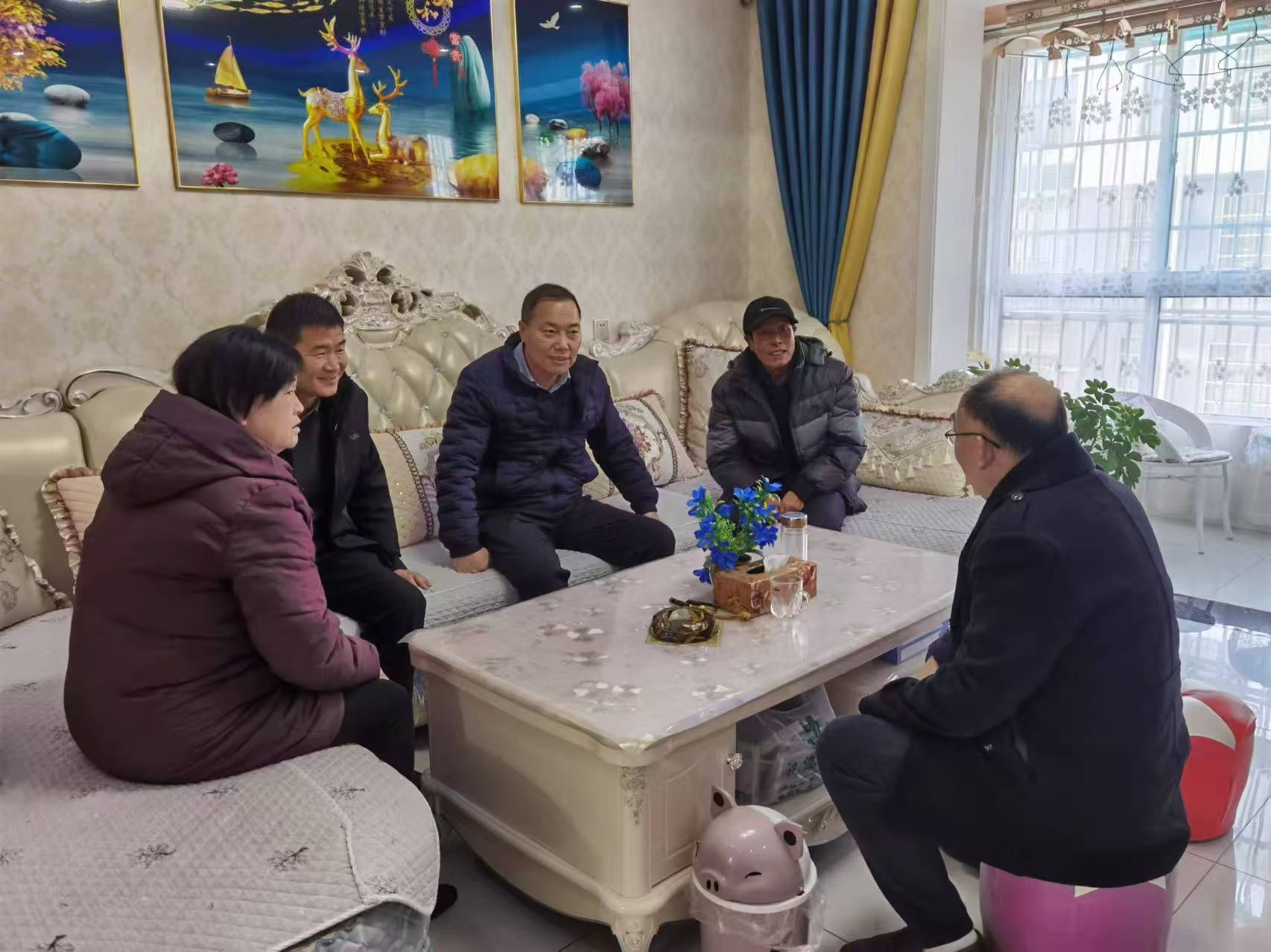 座談會后,常江慰問了結(jié)對幫扶戶程清海,送去生活物資,詢問其身體狀況和近期收入情況。張驍勇、齊仲鋒分別慰問了各自結(jié)對幫扶的脫貧對象。