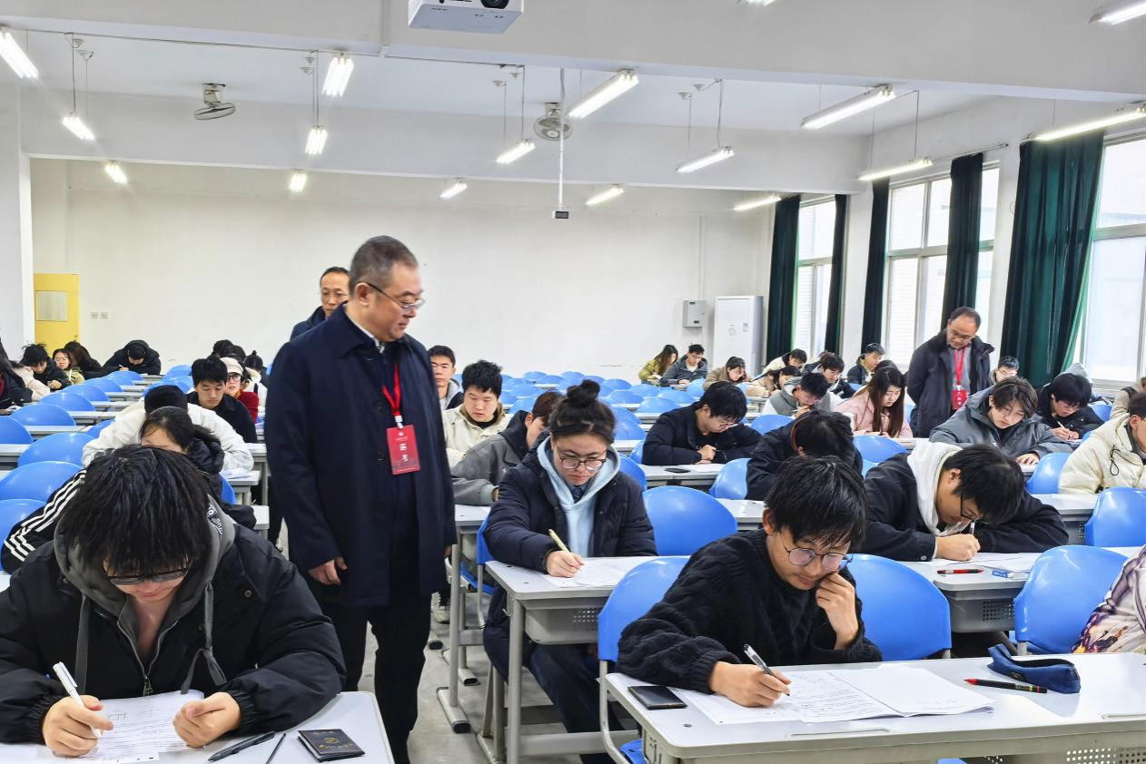 根據(jù)學(xué)校教學(xué)工作安排,2025年1月6日至10日為我校期末考試周。為進(jìn)一步加強(qiáng)考風(fēng)考紀(jì)建設(shè),營(yíng)造公平公正的考試環(huán)境,1月7日上午,校黨委書(shū)記常江等校領(lǐng)導(dǎo)在黨委辦公室(校長(zhǎng)辦公室)、教務(wù)處、學(xué)生工作部(處)等相關(guān)部門(mén)負(fù)責(zé)人陪同下,對(duì)考場(chǎng)考務(wù)和監(jiān)考巡考等工作進(jìn)行巡查。
