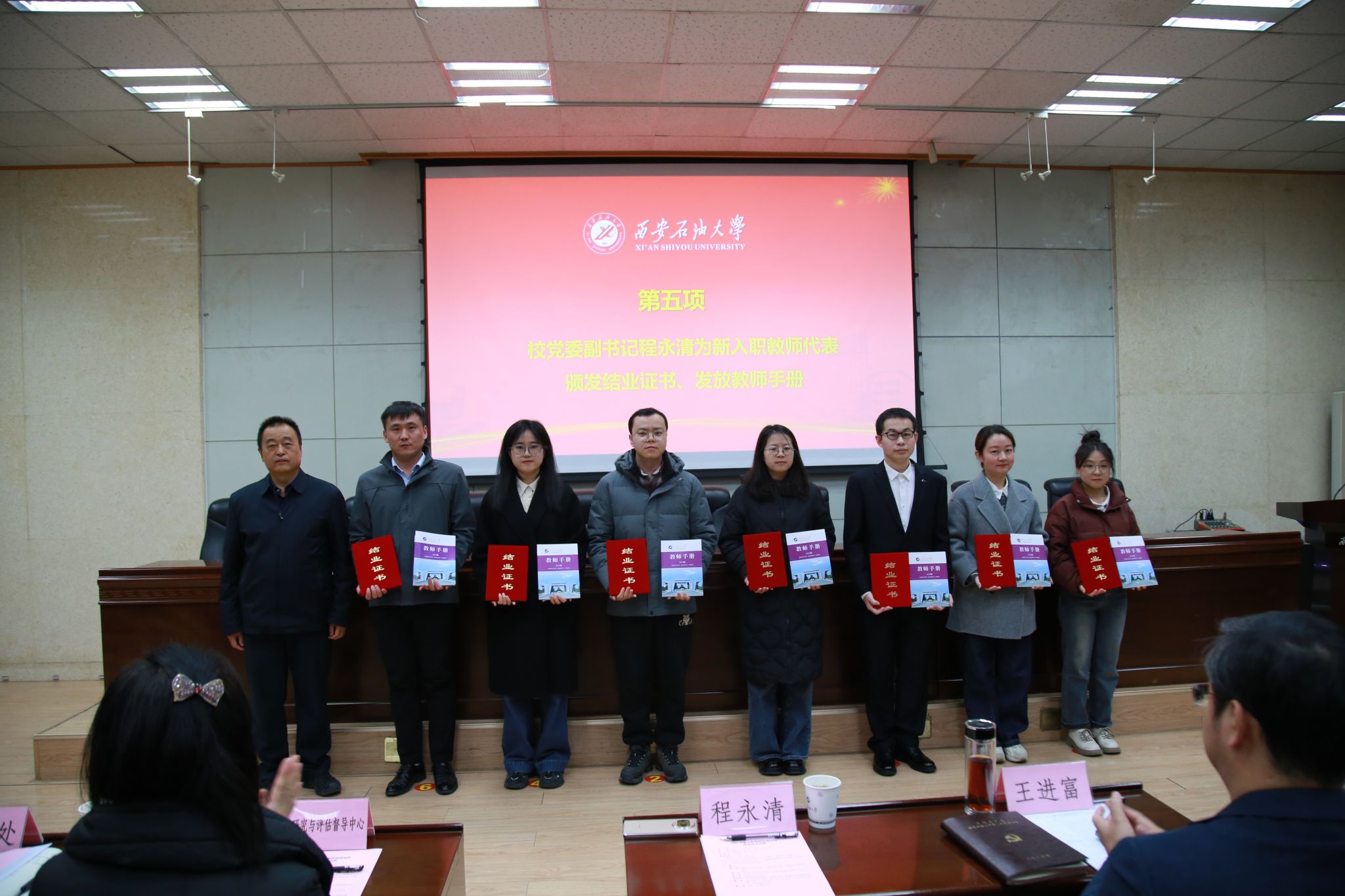 1月15日下午,我校在雁塔校區(qū)第三會(huì)議室舉行2024年新入職教師崗前培訓(xùn)結(jié)業(yè)儀式。校長王進(jìn)富出席并講話。校黨委副書記程永清,全國模范教師、化學(xué)化工學(xué)院教授黃風(fēng)林,人事處、教務(wù)處、高教研究與評(píng)估督導(dǎo)中心、科研處負(fù)責(zé)人及2024年新入職教師參加結(jié)業(yè)儀式。