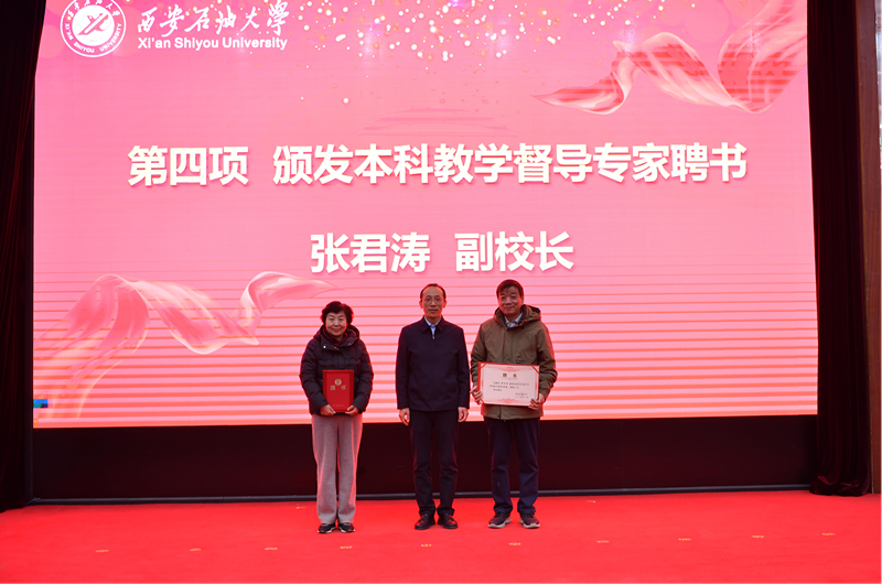 張君濤代表學(xué)校對卸任的第八屆本科教學(xué)督導(dǎo)專家在學(xué)校教學(xué)督導(dǎo)工作中的辛勤付出和無私奉獻(xiàn)表示衷心的感謝,并為第九屆學(xué)校本科教學(xué)督導(dǎo)專家頒發(fā)了聘書。