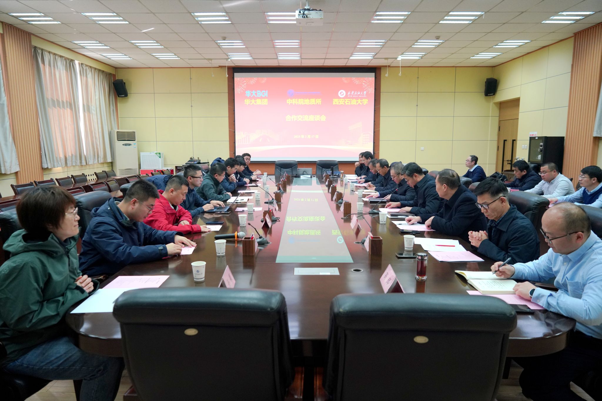 2月17日,我校與華大集團、中國科學院地質與地球物理研究所(以下簡稱“中科院地質所”)在雁塔校區(qū)圍繞科技創(chuàng)新、項目研究、拔尖創(chuàng)新人才培養(yǎng)等方面開展合作交流座談會。華大集團董事、副總裁楊爽,中科院地質所研究員、國家杰青李金華以及我校黨委書記常江,副校長張君濤出席會議。座談會由我校校長王進富主持。