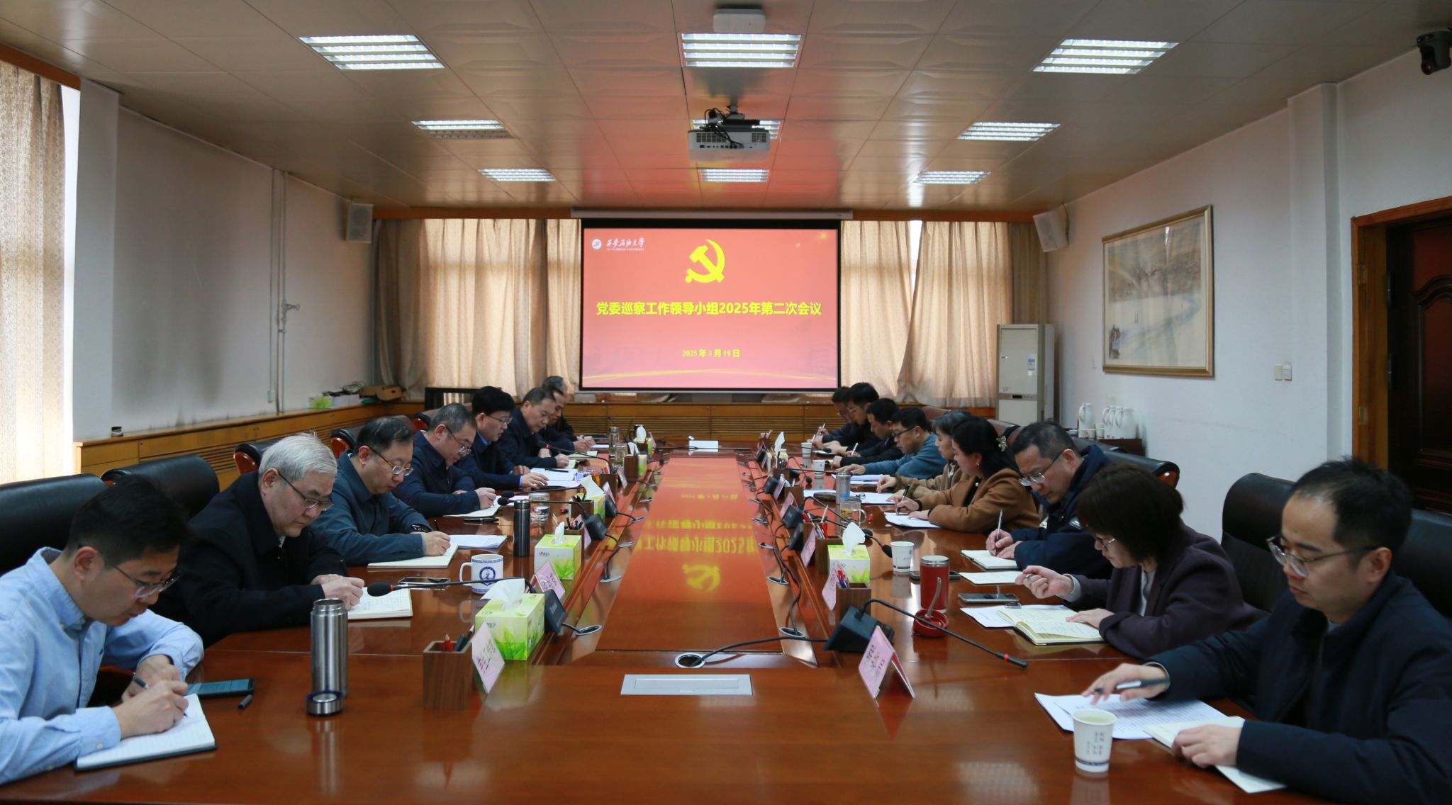 3 月19日下午,學校在雁塔校區(qū)辦公樓五樓會議室召開黨委巡察工作領(lǐng)導小組2025 年第二次會議,審議第三屆黨委第一輪巡察情況報告。校黨委書記、黨委巡察工作領(lǐng)導小組組長常江出席會議并講話。校黨委巡察工作領(lǐng)導小組成員單位和黨委統(tǒng)戰(zhàn)部、黨委學生工作部、黨委保衛(wèi)部、研究生工作部主要負責人參加會議。會議由校黨委副書記、紀委書記、監(jiān)察專員、黨委巡察工作領(lǐng)導小組副組長王輝強主持。