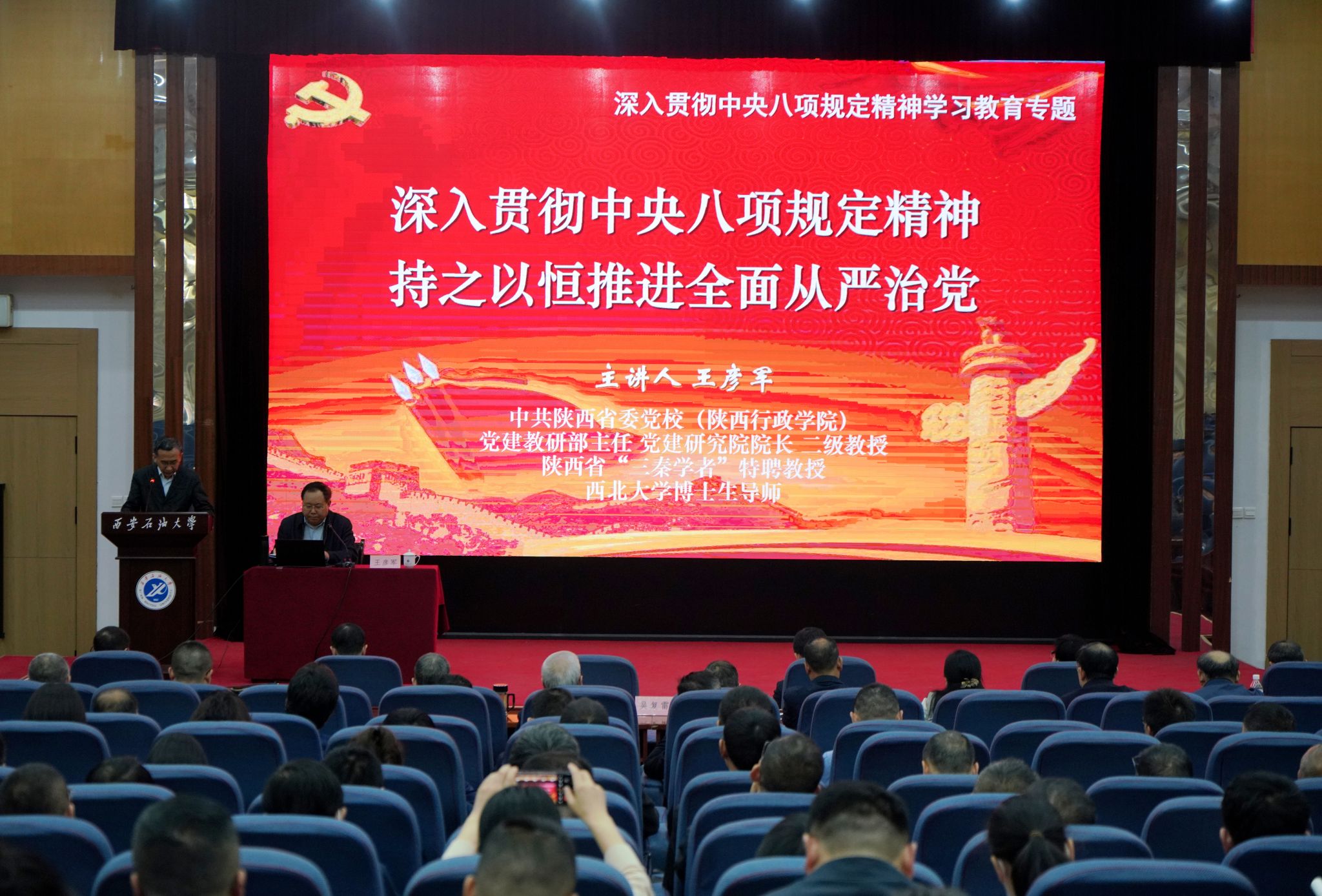 為進一步學(xué)深悟透中央八項規(guī)定精神,4月10日上午,學(xué)校舉行深入貫徹中央八項規(guī)定精神學(xué)習(xí)教育讀書班第二場專題輔導(dǎo)報告會,中共陜西省委黨校(陜西行政學(xué)院)黨建教研部主任、黨建研究院院長、二級教授王彥軍受邀作專題輔導(dǎo)。會前,校黨委副書記、校長王進富,校黨委副書記張木,校黨委委員、組織部部長種宇宏與王彥軍教授作了交流。輔導(dǎo)報告會由張木主持。