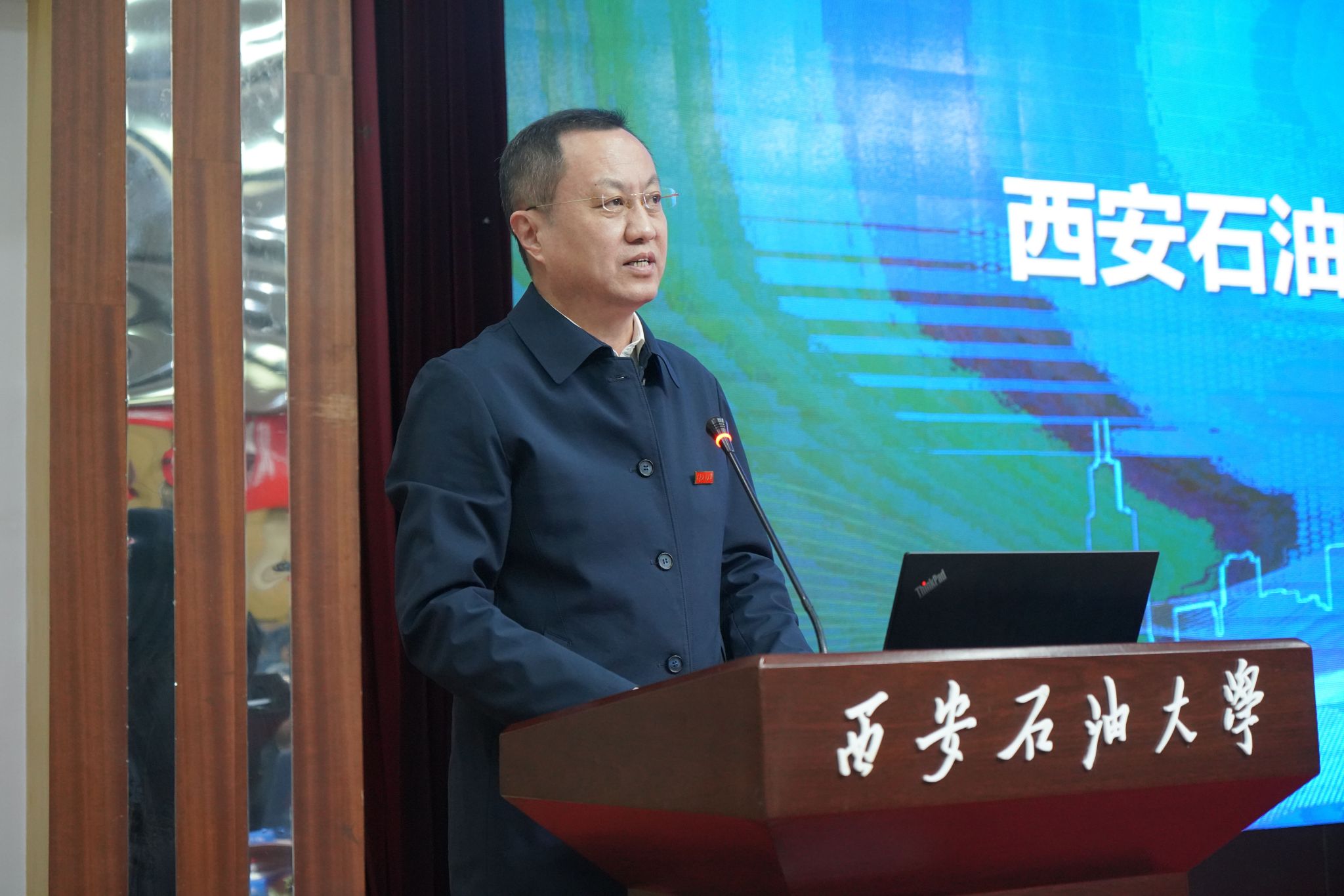 徐宗本院士、王根平副主任、省教育廳信息化處副處長劉賀英、長慶油田首席專家胡建國、寶雞石油機械有限責任公司副總經(jīng)理曹曉宇、中石油工程材料研究院有限公司副總經(jīng)理付安慶、寶石管業(yè)有限公司院長助理張峰,我校黨委書記常江共同為西安石油大學能源人工智能研究院揭牌。