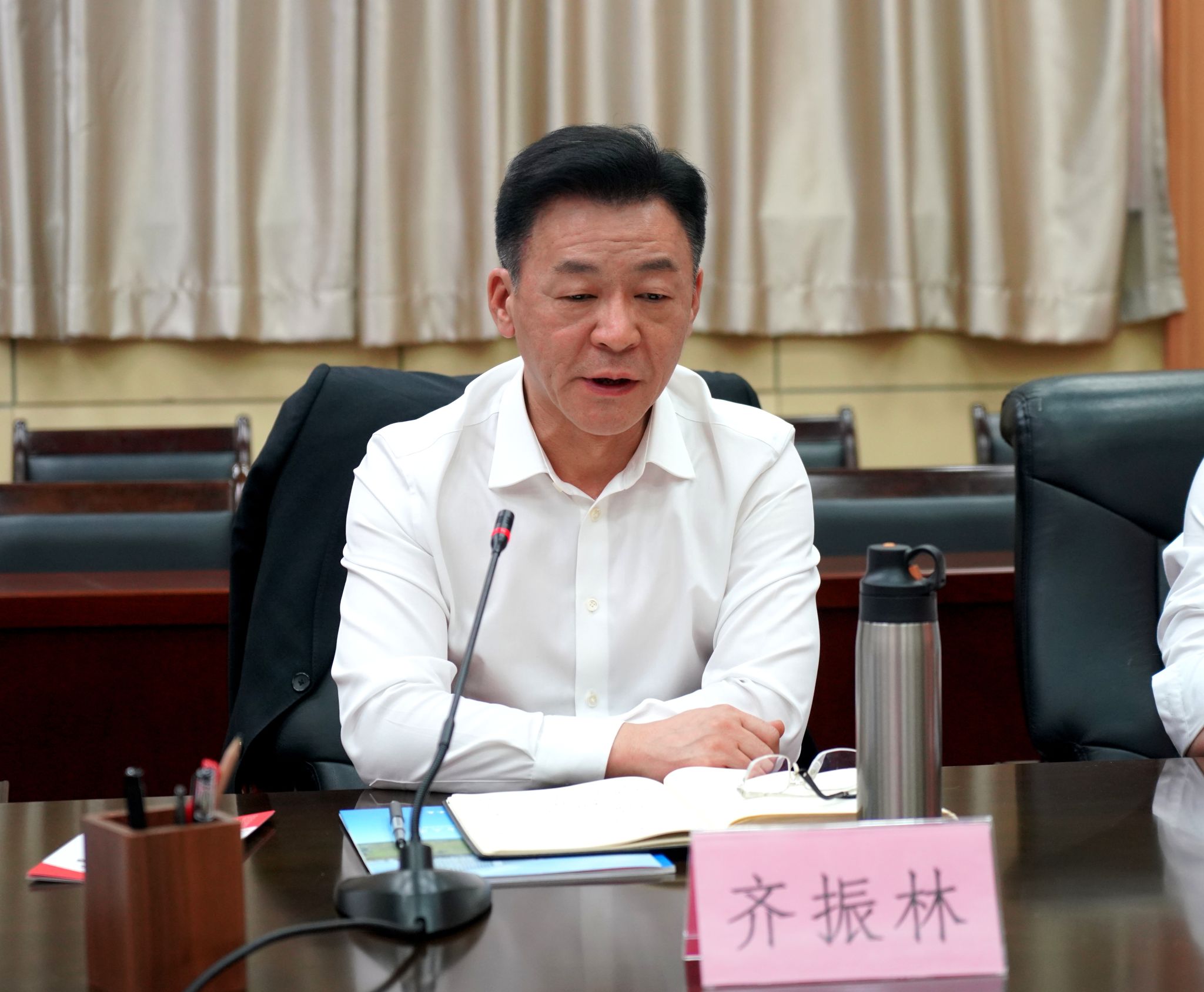 齊振林對學(xué)校給予遼河油田的人才供給和技術(shù)支持表示感謝,對學(xué)校近年來取得的一系列成績表示祝賀,并介紹了遼河油田的發(fā)展歷史、業(yè)務(wù)布局、科技創(chuàng)新以及未來規(guī)劃。他指出,遼河油田作為國內(nèi)最大的稠油生產(chǎn)基地,是中國石油天然氣股份有限公司的重要戰(zhàn)略產(chǎn)區(qū),在油氣勘探開發(fā)、生產(chǎn)運營等方面取得了豐碩成果。當(dāng)前,在能源行業(yè)轉(zhuǎn)型升級的背景下,遼河油田對科技創(chuàng)新和高素質(zhì)人才需求日益迫切。他表示,學(xué)校長期以來致力和深耕于石油石化領(lǐng)域,近年來在油氣勘探、油氣田開發(fā)、能源技術(shù)裝備等方面取得了顯著成果,為石油石化行業(yè)培養(yǎng)了大批優(yōu)秀人才。希望雙方以此次交流為契機,充分發(fā)揮各自優(yōu)勢,加強在人才聯(lián)合培養(yǎng)、科研聯(lián)合攻關(guān)等方面的務(wù)實合作,共同為保障國家能源安全和推動石油石化行業(yè)高質(zhì)量發(fā)展貢獻(xiàn)雙方力量。