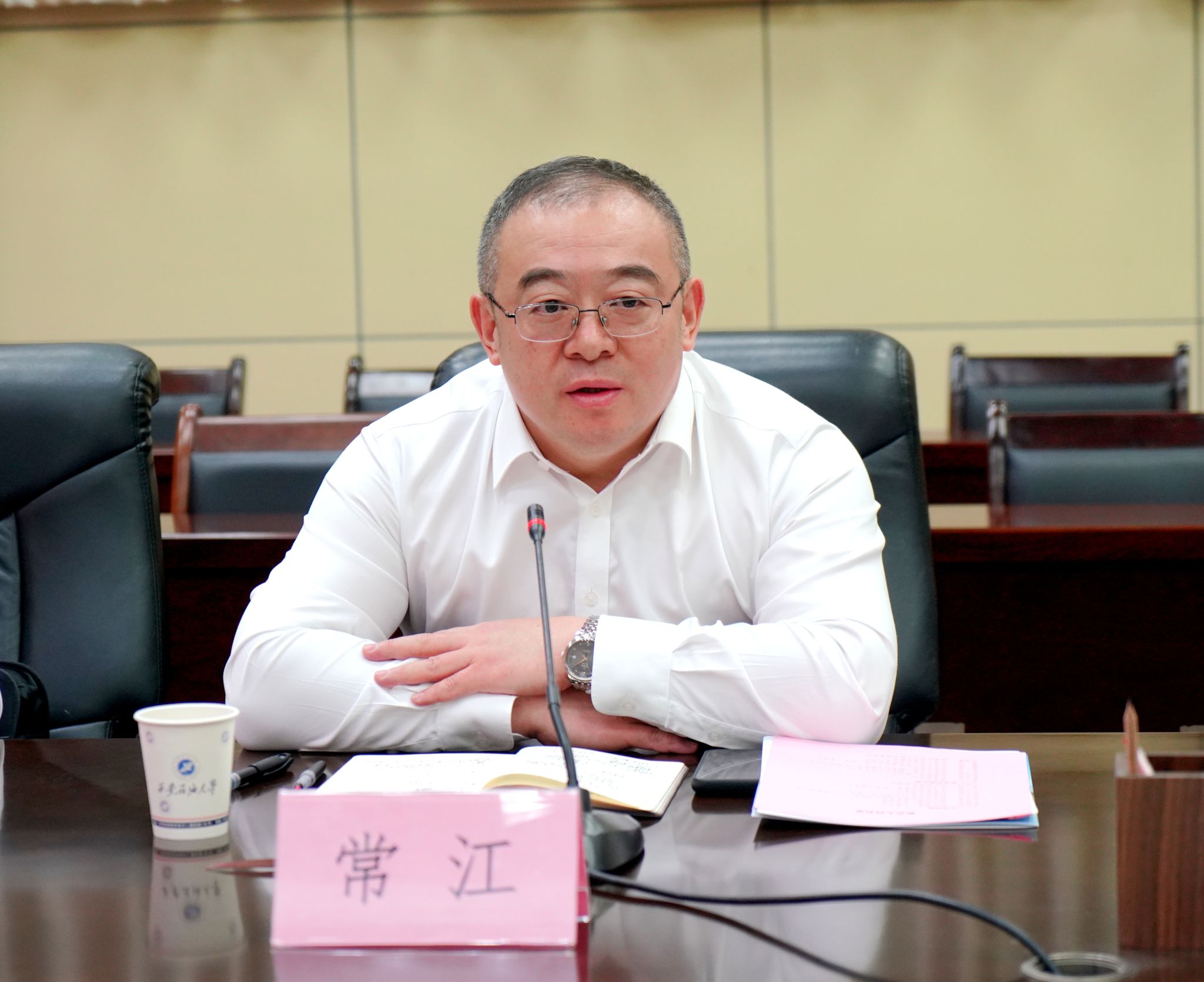 常江對齊振林一行來訪表示熱烈歡迎,對遼河油田長期以來給予學(xué)校的關(guān)心支持表示衷心感謝,對遼河油田近年來取得的成績和未來的發(fā)展規(guī)劃表示高度贊賞,對雙方下一步深度合作表示熱切期待,并梳理了學(xué)校的歷史發(fā)展脈絡(luò),回顧了學(xué)校賡續(xù)紅色血脈、傳承石油基因的歷程,闡述了學(xué)校具備的區(qū)位優(yōu)勢和發(fā)展建設(shè)情況。他指出,學(xué)校始終堅持以服務(wù)國家能源戰(zhàn)略和地方經(jīng)濟發(fā)展為己任,近年來秉持開放辦學(xué)理念,積極推進產(chǎn)學(xué)研深度融合,著力推動對外合作,相繼成立了卓越工程師學(xué)院、碳中和未來技術(shù)研究院、邊際油氣開發(fā)技術(shù)研究院、能源人工智能研究院等科研機構(gòu),致力于把學(xué)校科技、人才等優(yōu)勢,同行業(yè)的發(fā)展所需、特色優(yōu)勢相結(jié)合。截至目前,學(xué)校已與多家石油石化企業(yè)建立了良好的合作關(guān)系,在科技攻關(guān)、成果轉(zhuǎn)化、人才培養(yǎng)等方面取得了顯著成效。他表示,西石大和遼河油田同根同源,雙方具有深厚的歷史淵源、廣泛的合作基礎(chǔ)和光明的合作前景。希望雙方以此次座談為契機,在既定合作基礎(chǔ)上,進一步建立更加緊密的合作關(guān)系,在黨建共建、科研聯(lián)合攻關(guān)、科技成果轉(zhuǎn)化、人才聯(lián)合培養(yǎng)、獎項聯(lián)合申報、學(xué)生實習(xí)就業(yè)、員工教育培訓(xùn)等方面深度合作,把校企合作的規(guī)劃圖、路線圖變成施工圖、實景圖,共同擔(dān)負(fù)起服務(wù)油氣行業(yè)發(fā)展的使命擔(dān)當(dāng),不斷把校企合作推向新高度,奮力譜寫校企合作新篇章,攜手鑄就校企合作新典范,為保障國家能源安全做出新的更大貢獻(xiàn)。