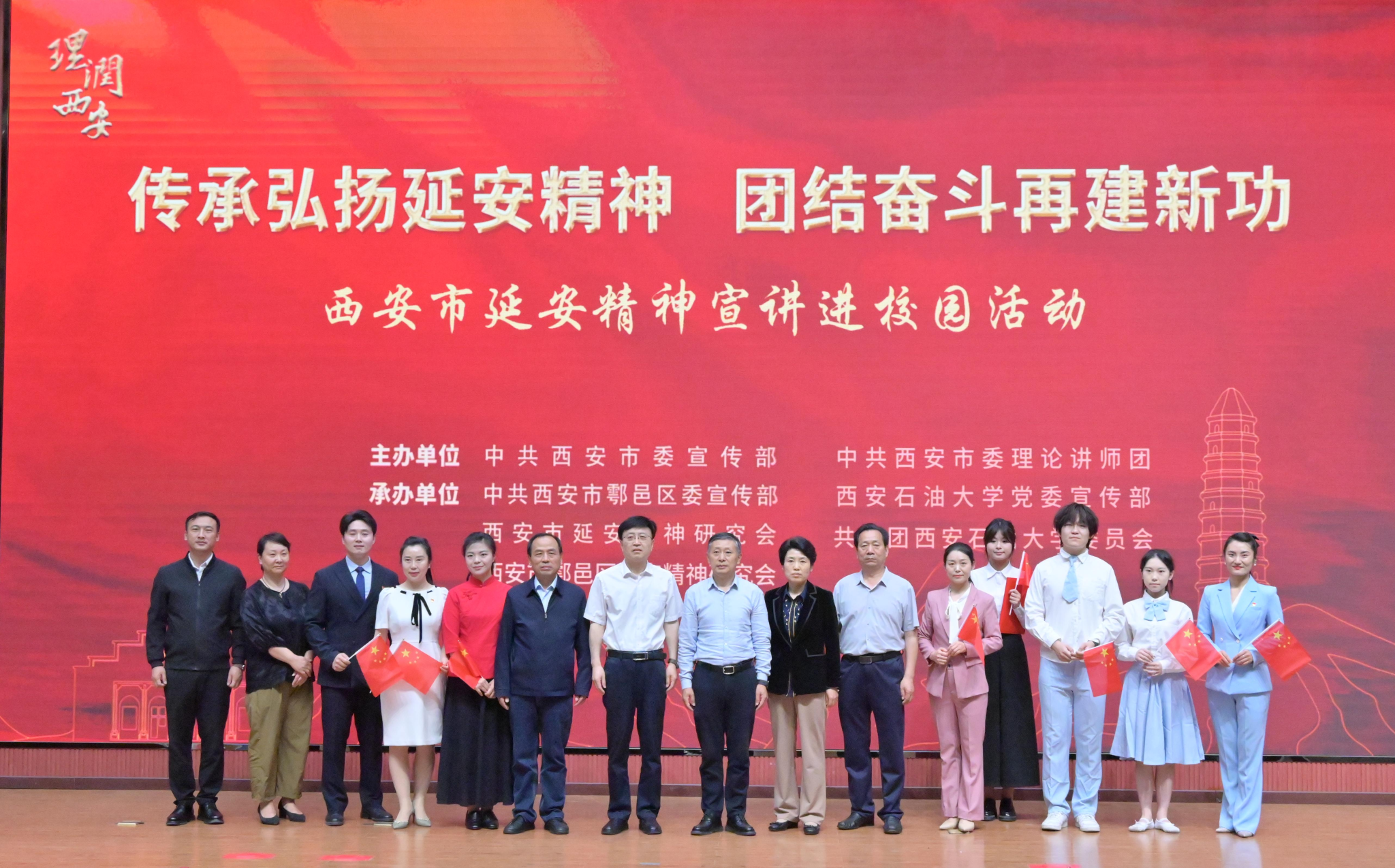 4月22日,由西安市委宣傳部、市委理論講師團主辦,鄠邑區(qū)委宣傳部、西安市延安精神研究會、鄠邑區(qū)延安精神研究會、校黨委宣傳部、校團委承辦的“傳承弘揚延安精神 團結奮斗再建新功”西安市延安精神宣講活動走進西安石油大學。西安市委理論講師團團長楊斌,校黨委副書記、紀委書記、監(jiān)察專員王輝強,鄠邑區(qū)委常委、宣傳部部長王值等領導及400余名師生代表參加了此次宣講活動。