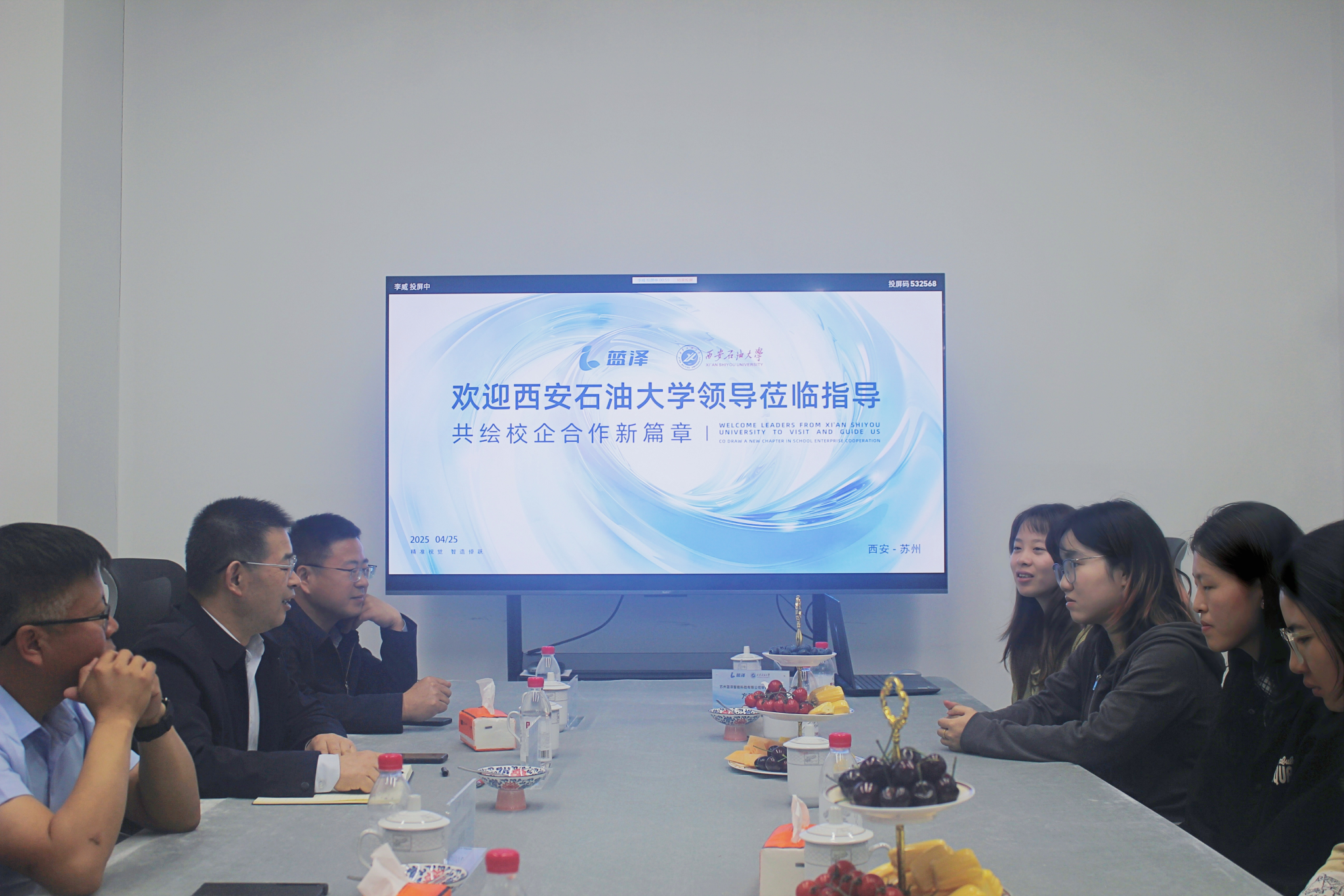 座談會上,張驍勇介紹了學(xué)校第三次黨代會提出的發(fā)展目標和任務(wù),以及在學(xué)科建設(shè)、科學(xué)研究、人才培養(yǎng)、服務(wù)社會等方面取得的成績。張驍勇表示,近年來學(xué)校扎實推進“三項改革”走深走實,積極開展基礎(chǔ)性理論研究與能源行業(yè)等社會經(jīng)濟發(fā)展深度融合,注重科研成果轉(zhuǎn)化,在“秦創(chuàng)原”等項目建設(shè)方面取得了突出成績,這些為培養(yǎng)符合社會需求的人才提供了堅實基礎(chǔ)。張驍勇強調(diào),蘇州藍澤智能科技有限公司的發(fā)展理念和產(chǎn)業(yè)布局緊跟人工智能時代需求,與學(xué)校的合作空間廣闊。希望借助蘇州藍澤的資源和平臺,學(xué)校相關(guān)學(xué)院以畢業(yè)生供需為紐帶,深度參與公司的產(chǎn)品研發(fā)、技術(shù)迭代升級等領(lǐng)域合作,組織教師來公司交流學(xué)習(xí),把校企合作項目落實落細。