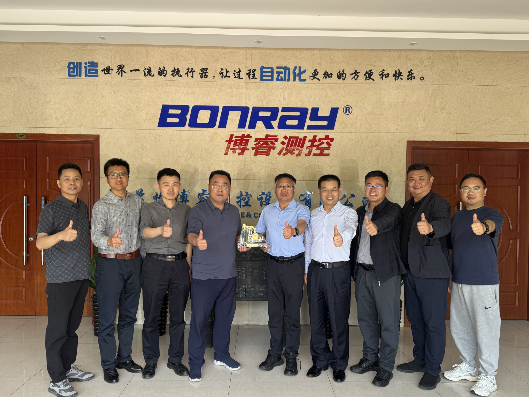 4月25日下午,張驍勇一行走訪了校友企業(yè)蘇州博睿測控設(shè)備有限公司。在公司總經(jīng)理李偉華校友、副總經(jīng)理華樂校友陪同下,張驍勇一行參觀了公司的展廳和生產(chǎn)車間,詳細了解公司的發(fā)展歷程、發(fā)展成就、技術(shù)創(chuàng)新優(yōu)勢和生產(chǎn)經(jīng)營情況。