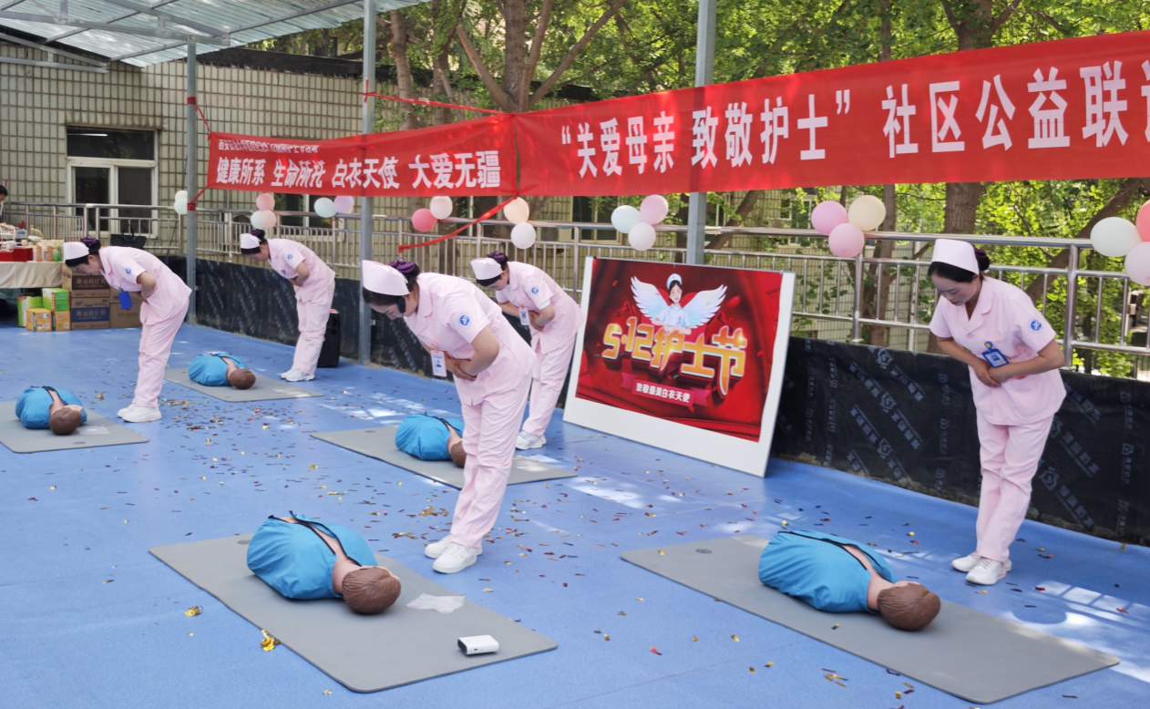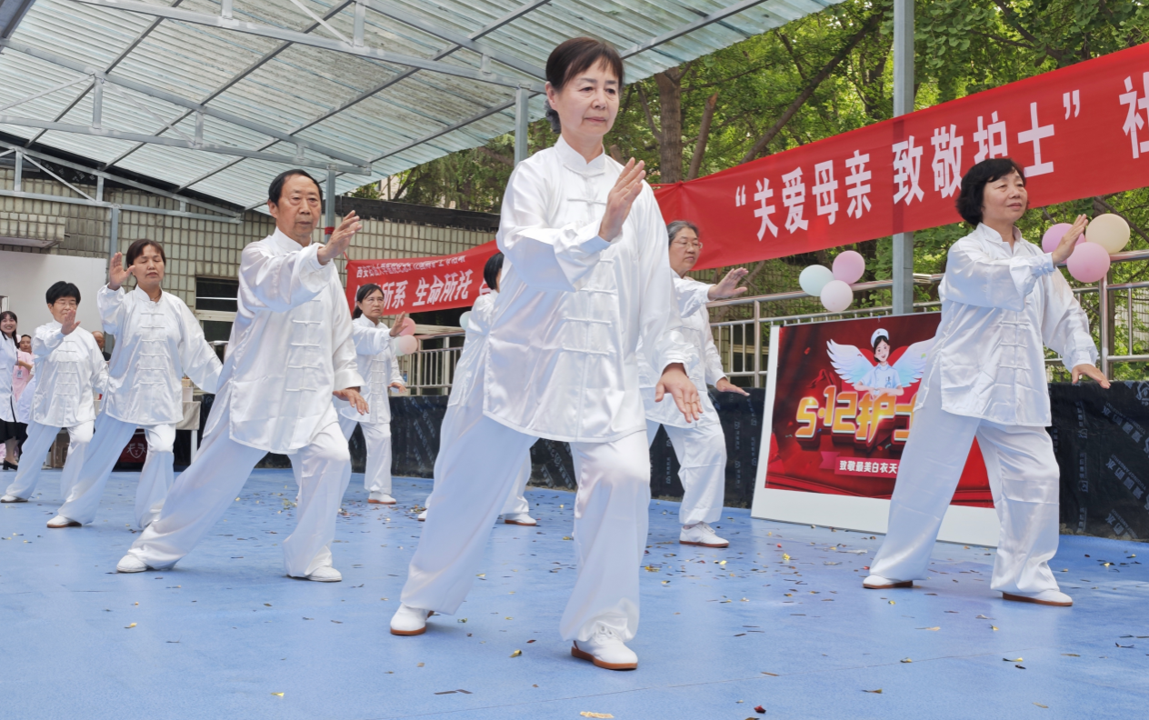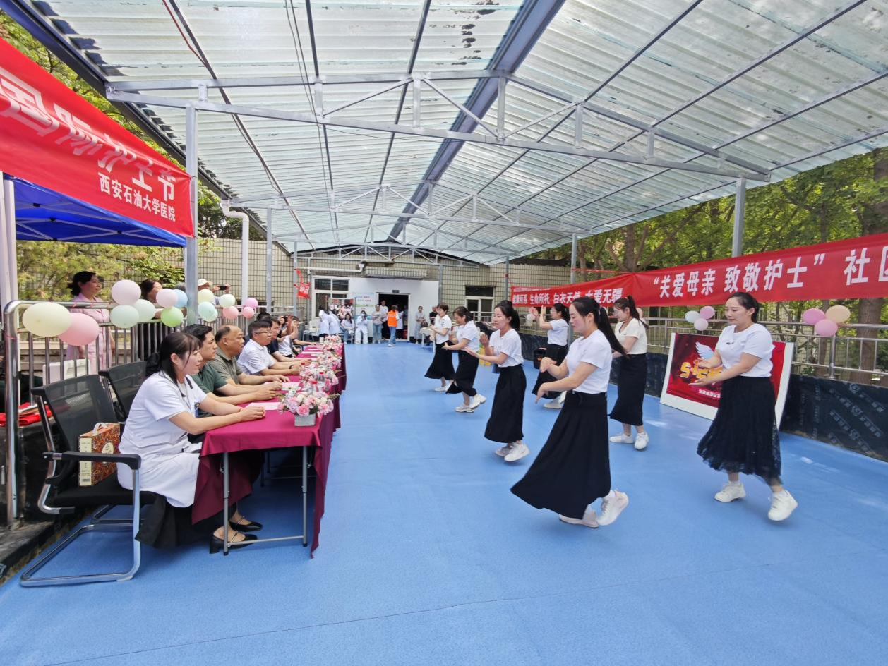 校醫(yī)院護理團隊宣傳示范心肺復蘇等突發(fā)急救技能并邀請中醫(yī)專家現(xiàn)場為師生問診,為社區(qū)居民提供健康咨詢。離退休老同志與西安圣宏養(yǎng)老服務(wù)中心帶來歌舞表演,以藝術(shù)形式傳遞愛與祝福。