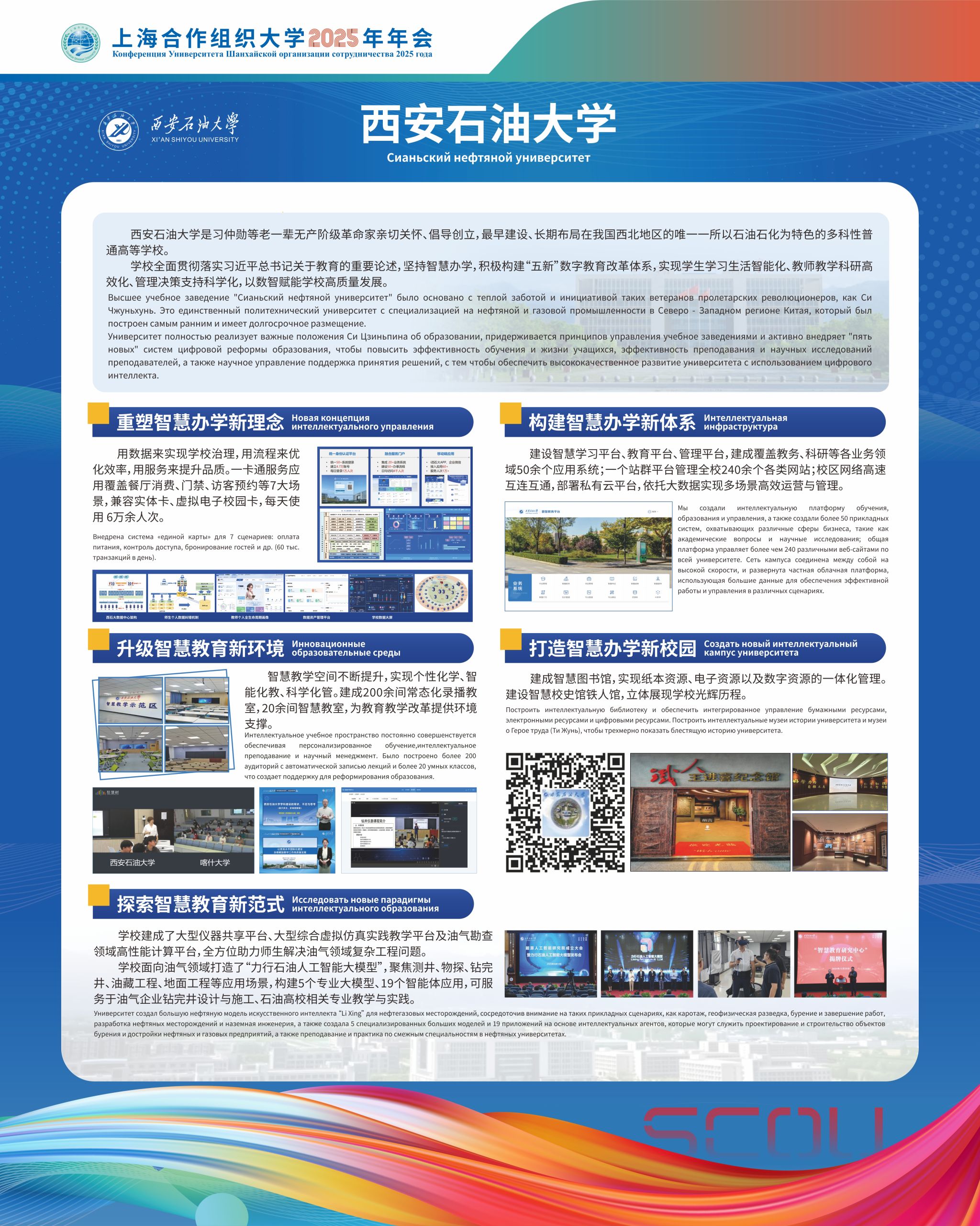 年會(huì)開(kāi)幕式開(kāi)始前,與會(huì)嘉賓在新疆國(guó)際會(huì)展中心現(xiàn)場(chǎng)參觀了上海合作組織大學(xué)(中國(guó))數(shù)字教育成果展。西安交通大學(xué)、新疆大學(xué)、華北電力大學(xué)、西安石油大學(xué)等23所上海合作組織大學(xué)中方成員高校參展,向與會(huì)各國(guó)嘉賓集中展示了我國(guó)高校數(shù)字教育的最新建設(shè)成果。