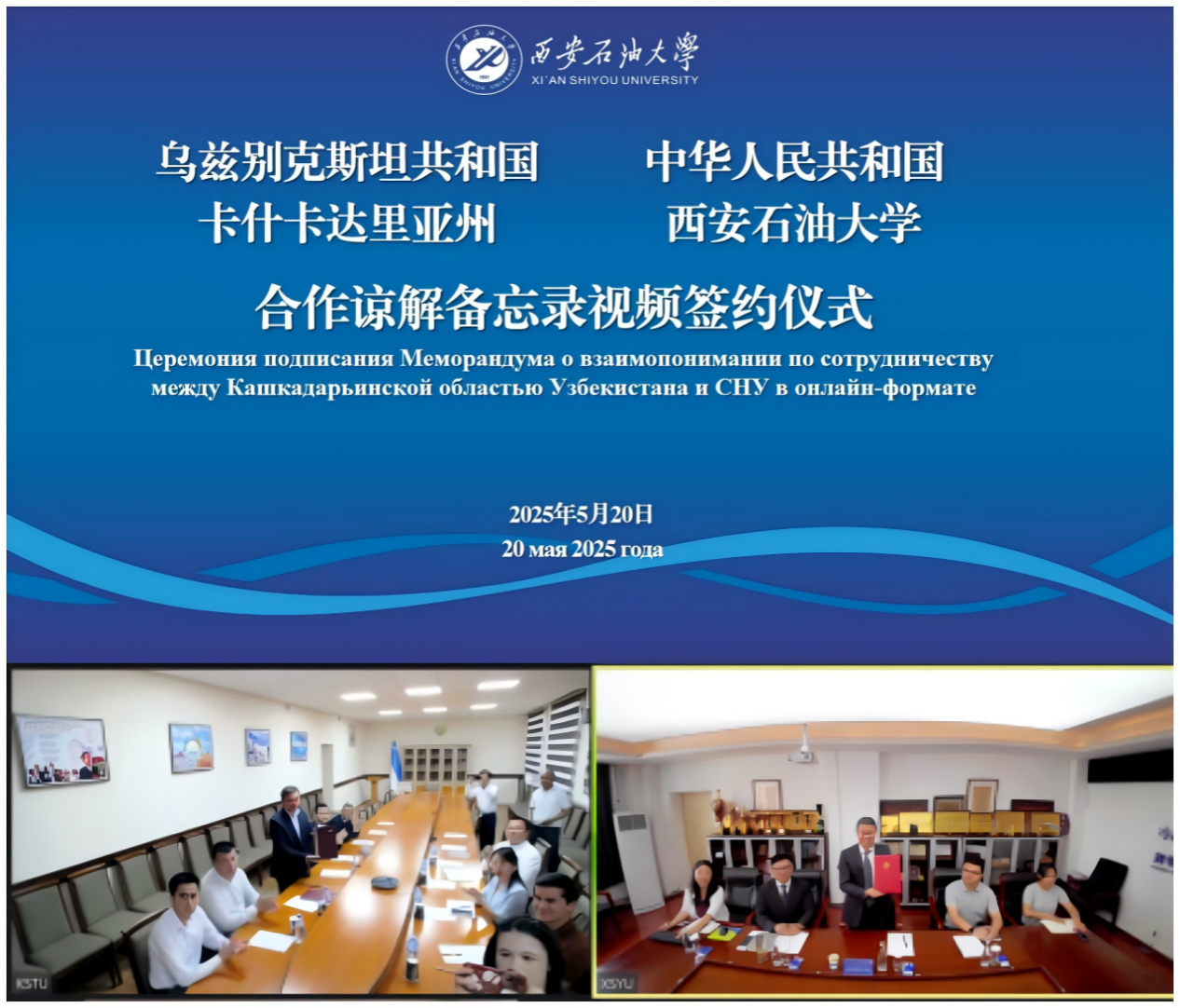 黨委辦公室(校長辦公室)、國際合作與交流處(國際教育學院)、石油工程學院等部門和學院負責人分別在西安、卡爾希兩地參加會議。