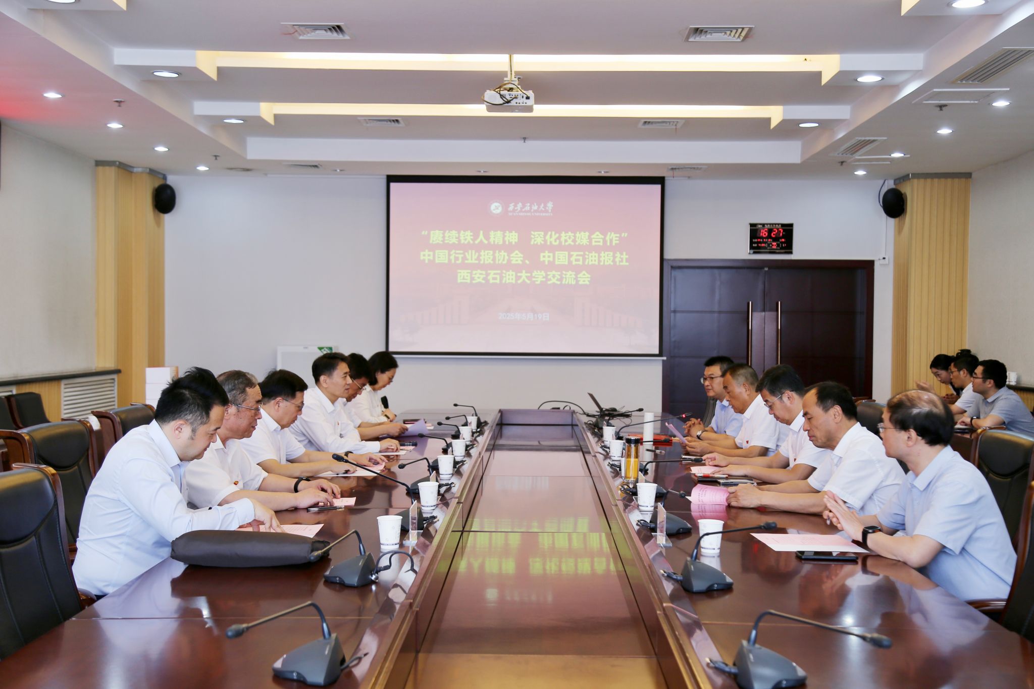 5月19日下午,中國(guó)行業(yè)報(bào)協(xié)會(huì)會(huì)長(zhǎng)張超文、《中國(guó)石油報(bào)》社有限公司總經(jīng)理耿玉鋒與我校領(lǐng)導(dǎo)在鄠邑校區(qū)圖書館第二會(huì)議室舉行座談,我校校長(zhǎng)王進(jìn)富出席會(huì)議,校黨委副書記程永清主持座談會(huì)。