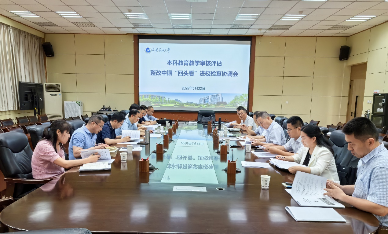 高教研究與評估督導中心副主任申燕匯報了審核評估整改中期“回頭看”進校檢查工作安排和專家進校檢查工作方案討論稿。各參會單位負責人就“回頭看”進校檢查工作進行了工作協(xié)調(diào)。