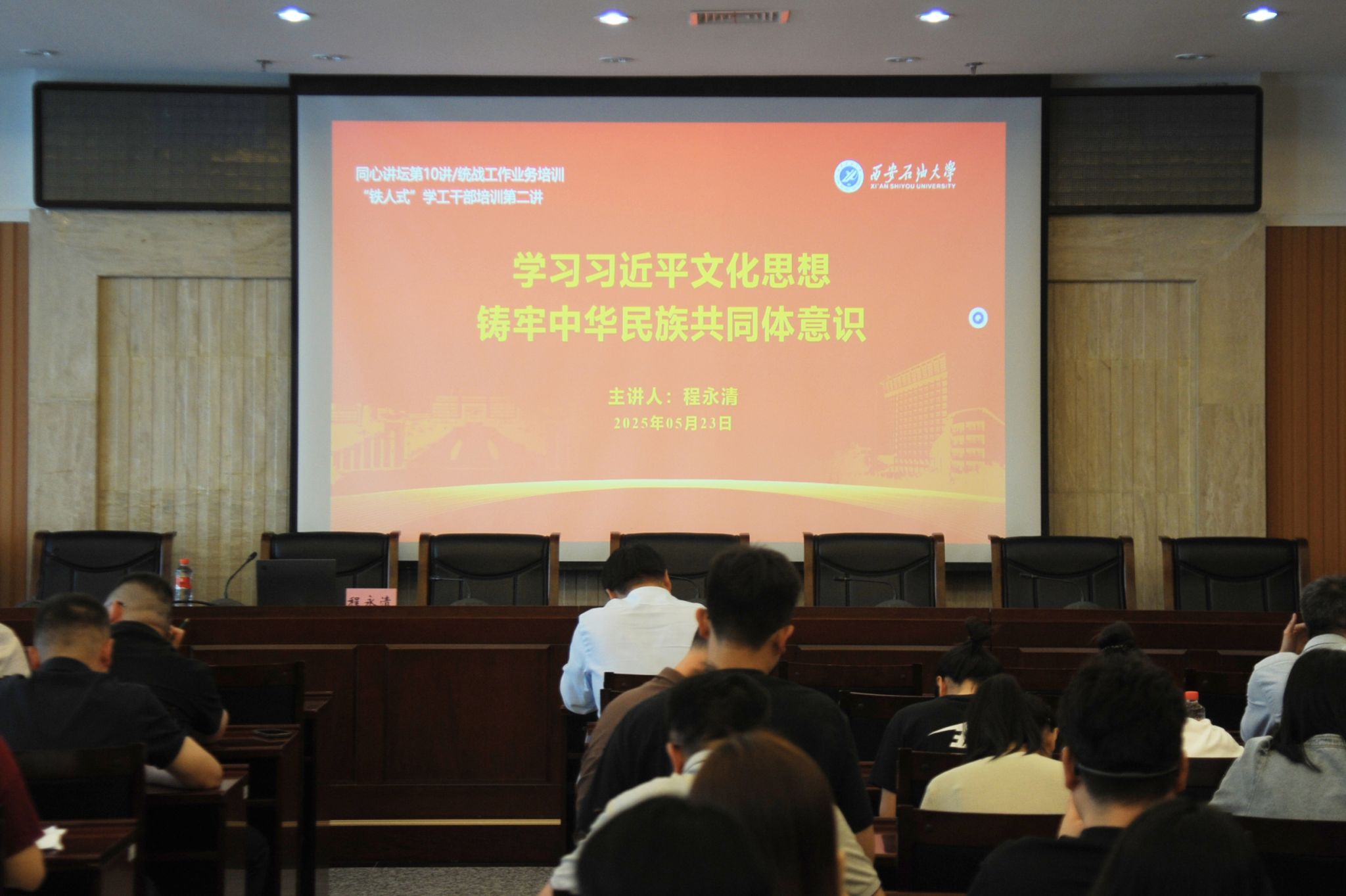 5月23日下午,校黨委副書記程永清在鄠邑校區(qū)圖書館第一會議室為全校學(xué)工干部作了題為“學(xué)習(xí)習(xí)近平文化思想 鑄牢中華民族共同體意識”專題報告。黨委統(tǒng)戰(zhàn)部、黨委學(xué)生工作部、研究生工作部等部門全體同志,各院(系)學(xué)生工作負(fù)責(zé)人及全體輔導(dǎo)員參加。