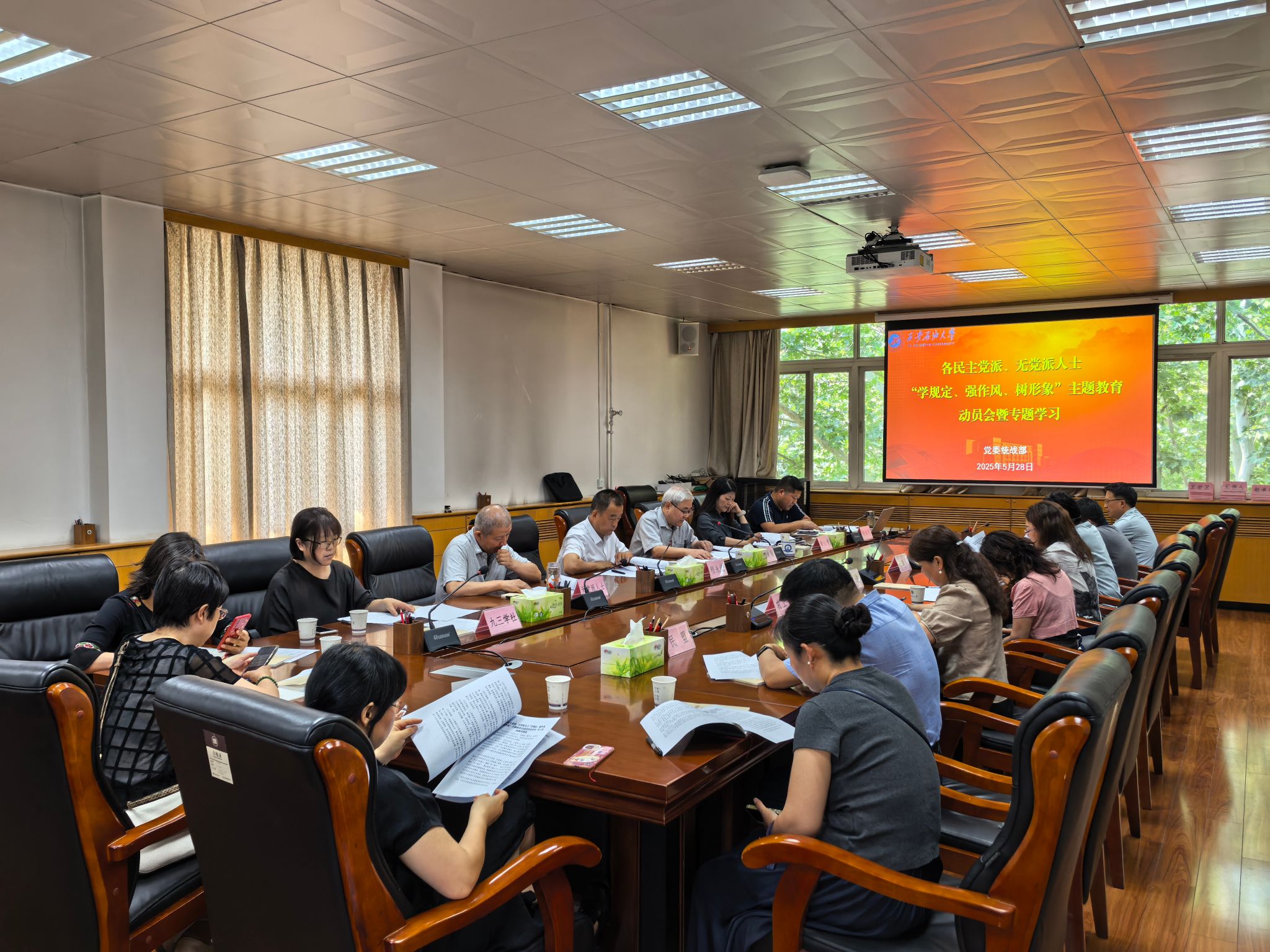 5月28日下午,學(xué)校在雁塔校區(qū)辦公樓五樓會議室召開各民主黨派、無黨派人士“學(xué)規(guī)定、強(qiáng)作風(fēng)、樹形象”主題教育動員會暨專題學(xué)習(xí)會,校黨委副書記程永清參加會議并作動員講話。黨委統(tǒng)戰(zhàn)部全體成員,各民主黨派支部委員,全體無黨派人士,僑聯(lián)、留聯(lián)會、知聯(lián)會負(fù)責(zé)人參加會議。