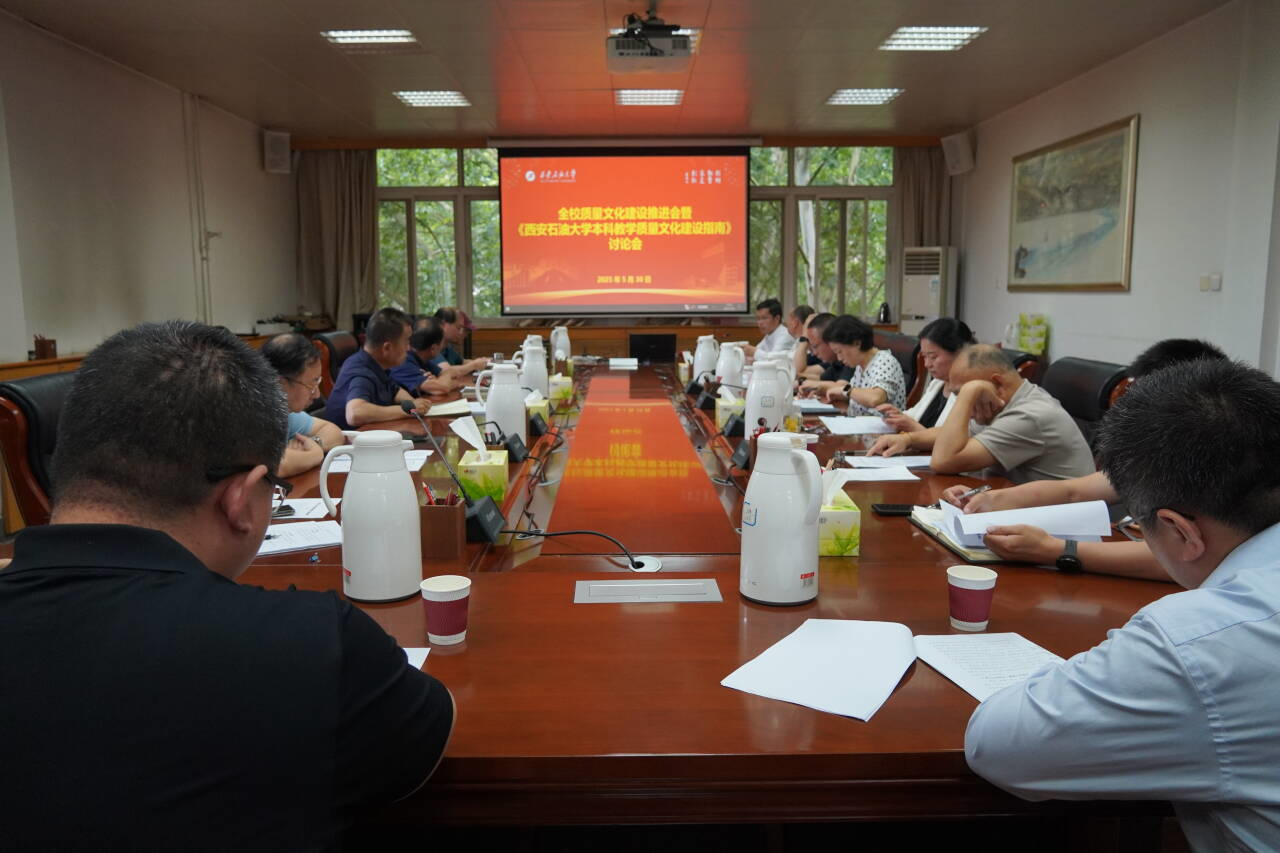 5月30日上午,學(xué)校在雁塔校區(qū)行政樓五樓會(huì)議室召開質(zhì)量文化建設(shè)推進(jìn)會(huì),就《西安石油大學(xué)本科教學(xué)質(zhì)量文化建設(shè)指南》(以下簡稱《指南》)主體內(nèi)容開展研討交流。校黨委副書記程永清出席會(huì)議。黨委辦公室(校長辦公室)、組織部、宣傳部、學(xué)生工作部、教師工作部、工會(huì)、團(tuán)委,發(fā)展規(guī)劃處、人事處、教務(wù)處、實(shí)驗(yàn)室管理處、國際教育學(xué)院、離退休工作處、后勤處等相關(guān)單位負(fù)責(zé)人參會(huì)。