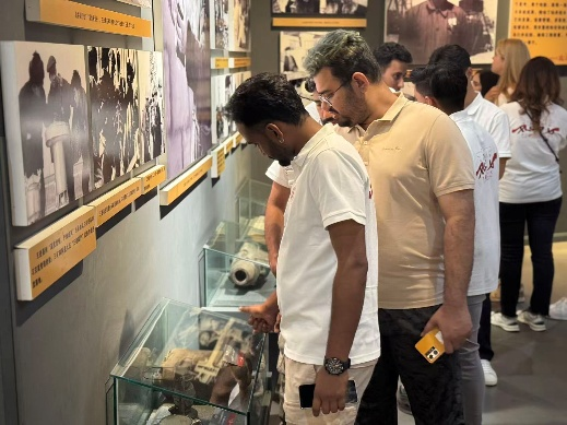 下午,師生們前往八路軍東渡黃河舊址和司馬遷祠參觀學習。在八路軍東渡黃河紀念展館,展柜中陳列的戰(zhàn)士們使用過的槍械、衣物、信件等物品,真實再現(xiàn)了那段艱苦卓絕的抗戰(zhàn)歲月。留學生們被中國共產(chǎn)黨領(lǐng)導下的人民軍隊英勇無畏、舍生忘死的精神深深震撼,表示此次參觀加深了他們對中國近現(xiàn)代史的理解,并對中國人民面對外敵入侵時展現(xiàn)的堅強意志和不屈精神深感敬佩。