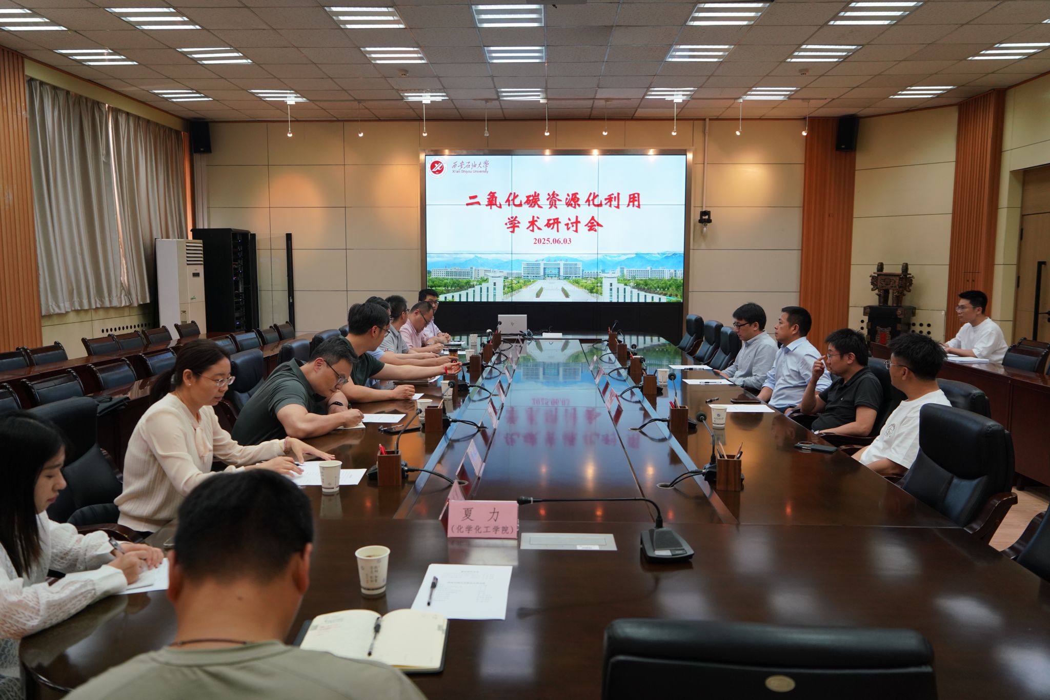 本次研討座談會邀請了中國科學院地球環(huán)境研究所粉塵與環(huán)境研究室主任黃宇教授、陜西師范大學化學化工學院國家杰青曹睿教授以及新西蘭坎特伯雷大學化學化工學院尹航教授等,圍繞CO?催化轉(zhuǎn)化、捕集封存等領(lǐng)域分享前沿成果,并針對我校學科特色,就碳學科建設(shè)、研究方向及人才培養(yǎng)等提出了指導(dǎo)建議。