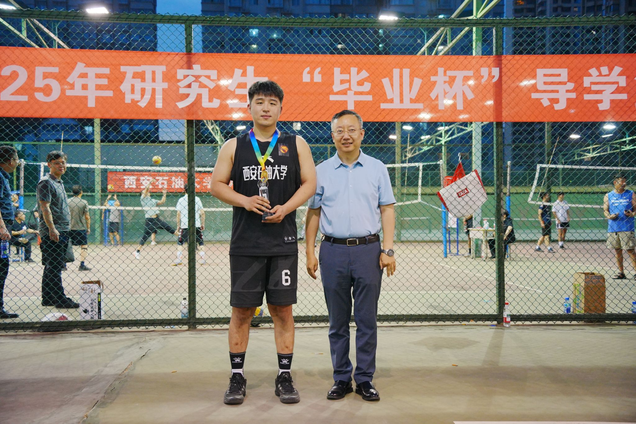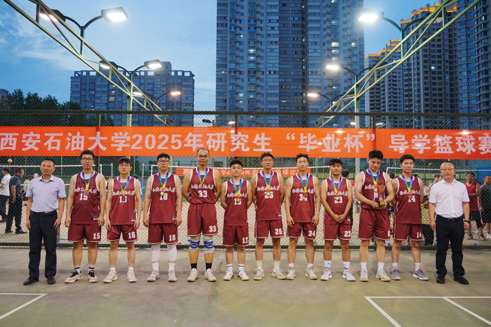 6月5日下午,西安石油大學(xué)2025年研究生“畢業(yè)杯”導(dǎo)學(xué)籃球賽閉幕式暨頒獎(jiǎng)典禮在雁塔校區(qū)籃球場(chǎng)舉行。校長(zhǎng)王進(jìn)富、副校長(zhǎng)種宇宏出席閉幕頒獎(jiǎng)儀式。研究生工作部、研究生院、團(tuán)委、體育學(xué)院負(fù)責(zé)人與參賽師生共同見(jiàn)證頒獎(jiǎng)榮耀時(shí)刻。