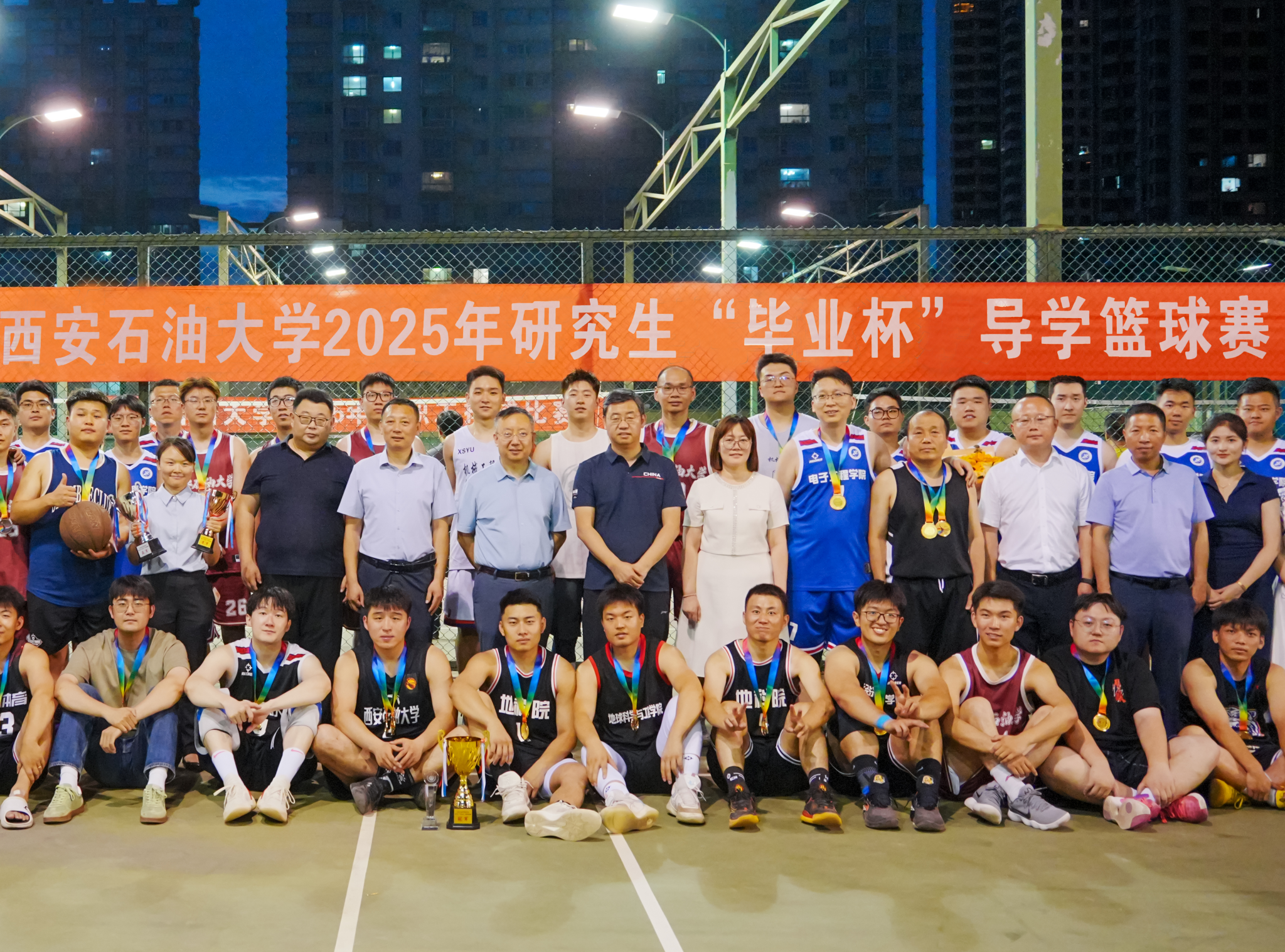 隨著全體獲獎(jiǎng)?wù)吲c領(lǐng)導(dǎo)嘉賓合影留念,這場(chǎng)承載著導(dǎo)學(xué)情誼與青春記憶的籃球盛宴圓滿落幕。賽場(chǎng)上的每一次奔跑、每一聲吶喊,都將成為畢業(yè)生們奔赴人生新賽場(chǎng)的動(dòng)力源泉。