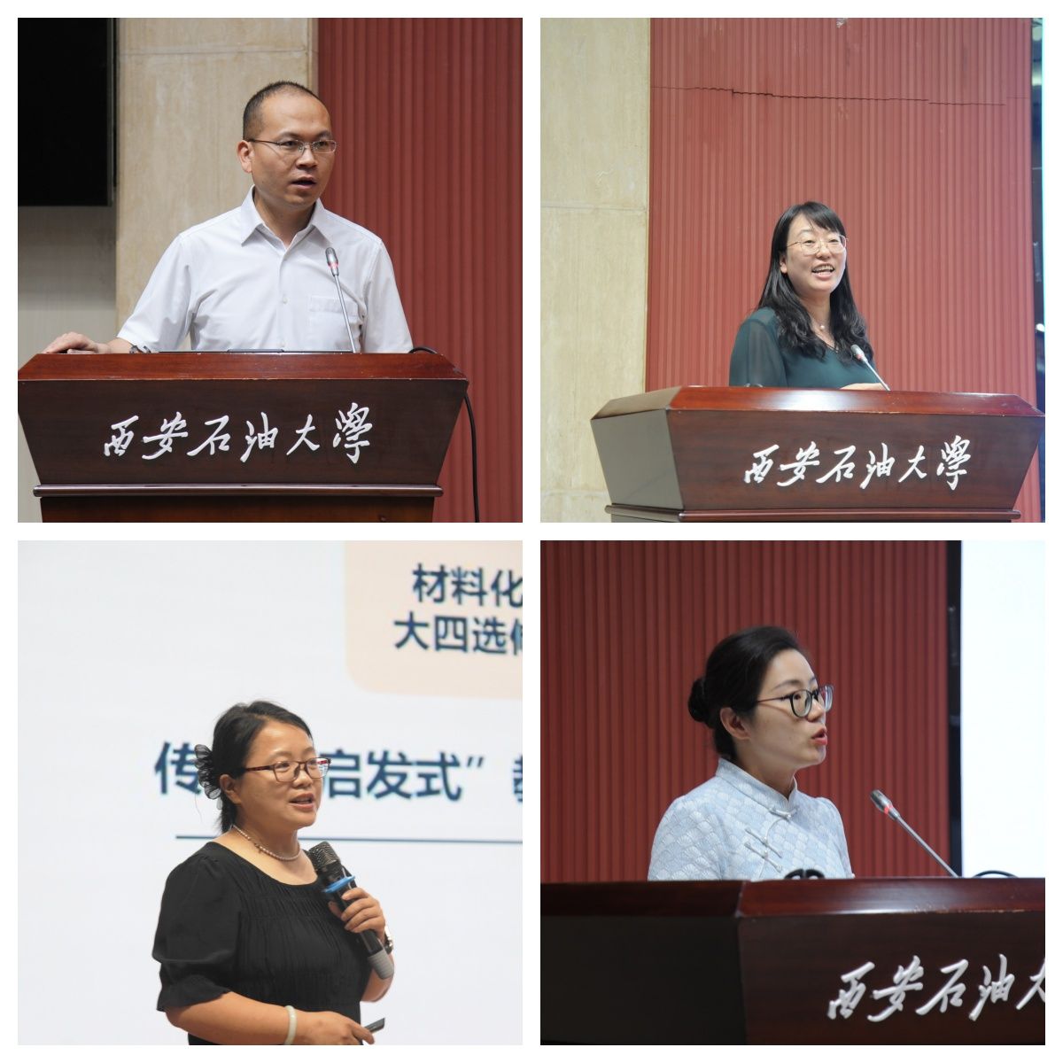 在石油高校教育教學(xué)創(chuàng)新論壇環(huán)節(jié),西北工業(yè)大學(xué)張磊磊、中國石油大學(xué)(華東)甄玉花、東北石油大學(xué)顏冰、西南石油大學(xué)傅晶晶四位專家分別圍繞“激發(fā)興趣與啟發(fā)思考的課程思政創(chuàng)新設(shè)計”、“共筑材料故事,打造三有課堂—國家一流課程‘材料物理”課程建設(shè)談’、“紓解課程思政建設(shè)問題,解碼價值塑造的隱形路徑”、“新文科課程思政團(tuán)隊建設(shè)經(jīng)驗”等主題作了前沿而務(wù)實的報告,分享了寶貴的實踐經(jīng)驗與創(chuàng)新理念,為深化石油特色課程思政建設(shè)提供了新思路和新路徑,也為我校教師帶來了深刻啟發(fā)。