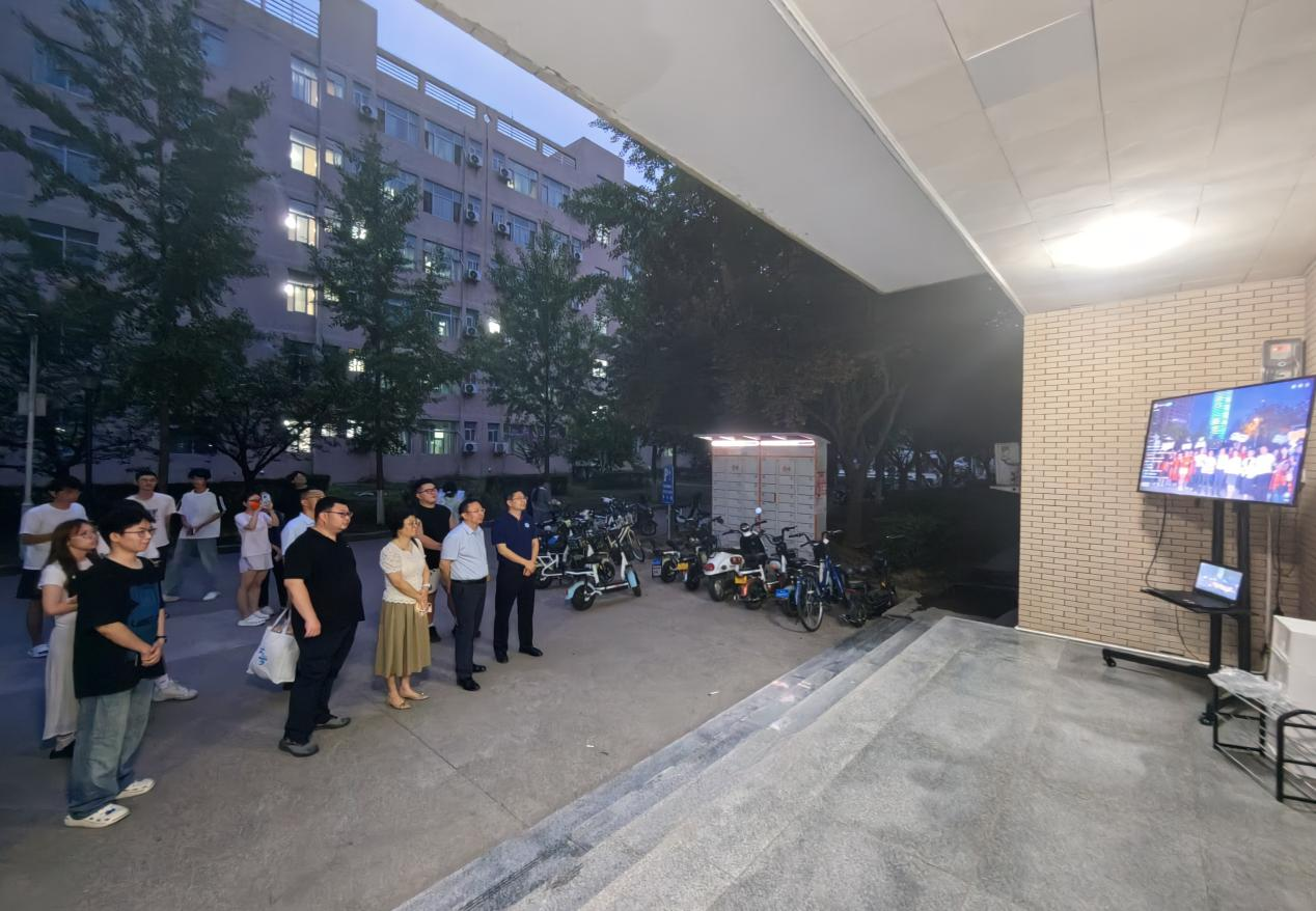 除現(xiàn)場(chǎng)打卡外,黨委學(xué)生工作部精心組織畢業(yè)生們?cè)卩傄匦^(qū)各宿舍樓大廳內(nèi)外,共同見證這份來自城市天際線的深情告白。副校長(zhǎng)種宇宏在學(xué)工部主要負(fù)責(zé)人陪同下,逐樓走訪各觀禮點(diǎn)位,全程陪伴同學(xué)們觀看直播。