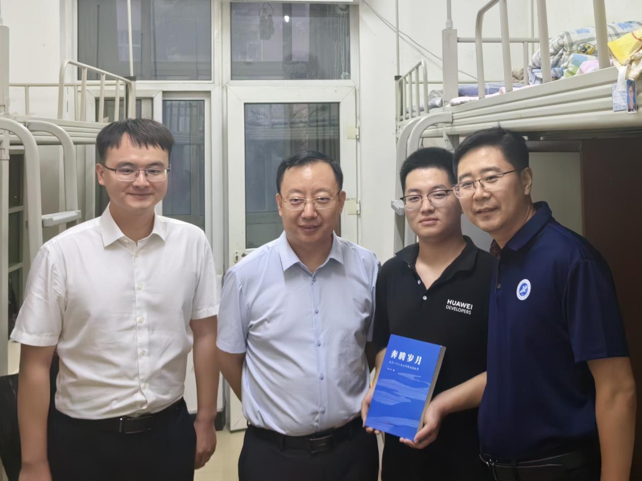 走訪中,種宇宏與畢業(yè)生們親切交流,關(guān)切詢問同學(xué)們?cè)谛F陂g的學(xué)業(yè)成長(zhǎng)、就業(yè)去向及未來規(guī)劃。交談過程中,他還向畢業(yè)生們贈(zèng)送了飽含心意的畢業(yè)紀(jì)念品,包括鐫刻著“石大棟梁 矢志報(bào)國(guó)”字樣的英雄鋼筆,蘊(yùn)含勵(lì)志精神的書籍《奔騰歲月》,以及憨態(tài)可掬的易班熊玩偶,每一份禮物都寄托著對(duì)畢業(yè)生的美好期許與深情祝福。同學(xué)們敞開心扉,暢談成長(zhǎng)感悟與奮斗目標(biāo)。對(duì)升學(xué)深造的同學(xué),種宇宏充分肯定其學(xué)業(yè)成果,殷切囑托大家要秉持“好學(xué)力行,自強(qiáng)不息”的校訓(xùn)精神,在學(xué)術(shù)道路上勇攀高峰;對(duì)即將奔赴工作崗位的同學(xué),他送上誠(chéng)摯祝賀,勉勵(lì)大家在新崗位上腳踏實(shí)地、銳意進(jìn)取,以實(shí)干成就人生價(jià)值。溫馨互動(dòng)點(diǎn)燃了現(xiàn)場(chǎng)氣氛,同學(xué)們紛紛拿出獲贈(zèng)書籍,熱情邀請(qǐng)種宇宏副校長(zhǎng)在扉頁簽字贈(zèng)言,希望帶著這份珍貴的祝福踏上新的征程。