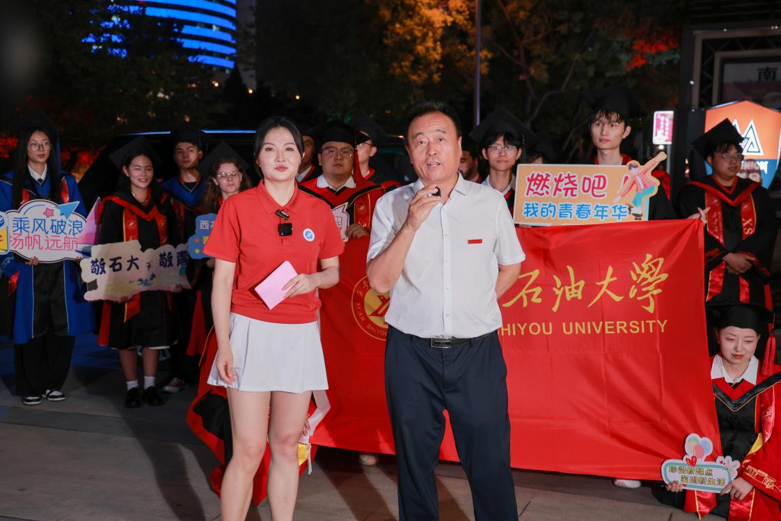 當(dāng)直播間傳來“傳承鐵人精神,堅(jiān)定能源報(bào)國(guó)理想”的激昂口號(hào),瞬間點(diǎn)燃鄠邑校區(qū)畢業(yè)生宿舍樓下的熱烈氛圍。當(dāng)“祝西石大2025屆畢業(yè)生前程似錦”的祝福在夜色中閃耀,母校的牽掛化作熠熠星光,傳遞著最真摯的祝愿。點(diǎn)點(diǎn)燈火傳遞城市祝福,聲聲叮嚀承載母校深情。點(diǎn)亮活動(dòng)甫一結(jié)束,種宇宏在學(xué)工部負(fù)責(zé)人、各院系副書記及畢業(yè)班輔導(dǎo)員的陪同下,步履不停,深入畢業(yè)生宿舍,開展暖心走訪慰問,為即將揚(yáng)帆遠(yuǎn)航的學(xué)子送上關(guān)懷與祝福。