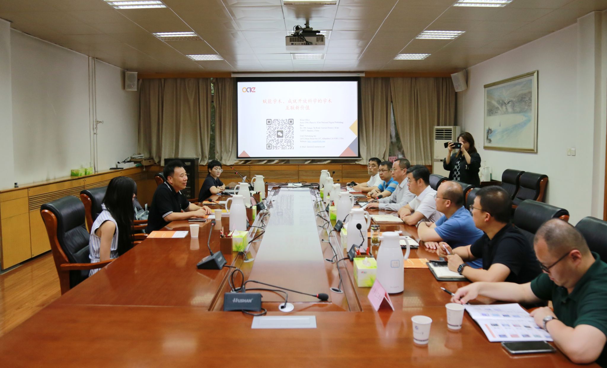6月25日下午,OAE出版公司總裁樊敏等一行4人來我校交流訪問,座談交流會在雁塔校區(qū)行政樓會議室舉行。校長王進富、副校長張榮軍出席了會議。
