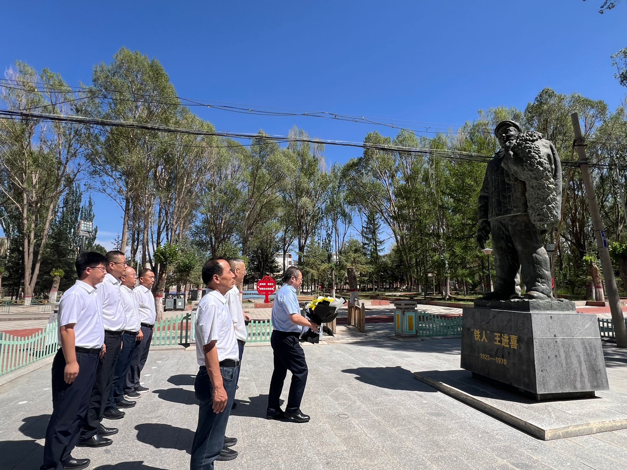 在玉門老城區(qū),常江一行專門拜祭了新中國西北石油工業(yè)奠基人、西北石油工業(yè)學(xué)校創(chuàng)建者之一的鄒明革命先輩,代表學(xué)校敬獻了鮮花,向新中國西北石油工業(yè)奠基人、西北石油工業(yè)學(xué)校創(chuàng)建者之一的孫健初紀念碑和鐵人王進喜銅像敬獻了鮮花。玉門油田黨委委員、總地質(zhì)師唐海忠,生產(chǎn)保障服務(wù)中心執(zhí)行董事、黨委書記王美強陪同參加當(dāng)天活動。