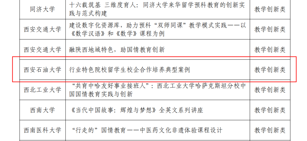 近年來(lái),我校高度重視國(guó)際化人才培養(yǎng)工作,先后與中塔天然氣管道公司、中吉天然氣管道公司等聯(lián)合開展人才培養(yǎng)項(xiàng)目,形成了較為成熟的校企聯(lián)合培養(yǎng)模式與協(xié)同育人機(jī)制。此次入選典型案例,充分體現(xiàn)了我校在來(lái)華留學(xué)教育領(lǐng)域的創(chuàng)新成果和示范價(jià)值。未來(lái),我校將以本次典型案例入選為契機(jī),持續(xù)深化來(lái)華留學(xué)教學(xué)改革與研究,總結(jié)來(lái)華留學(xué)教育經(jīng)驗(yàn),進(jìn)一步提升來(lái)華留學(xué)教育質(zhì)量。