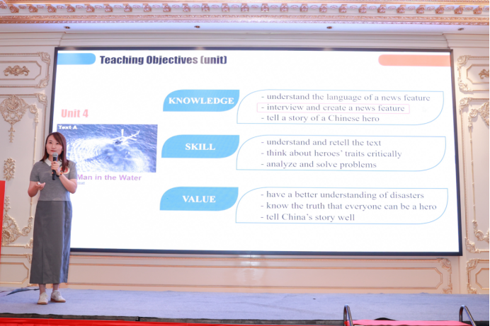 在比賽中,苗旸、拓葳、鐘澤波、余琴、李芳蕾團隊以“講好中國故事,促進文明互鑒”為核心,深入挖掘教材內涵,巧妙融合數(shù)字化、智能化教學手段,構建了“以學生為中心、以能力為導向”的創(chuàng)新教學模式。團隊通過案例教學、情景模擬、跨文化對比等多元方法,充分展現(xiàn)了我校在智慧教育領域的探索成果。