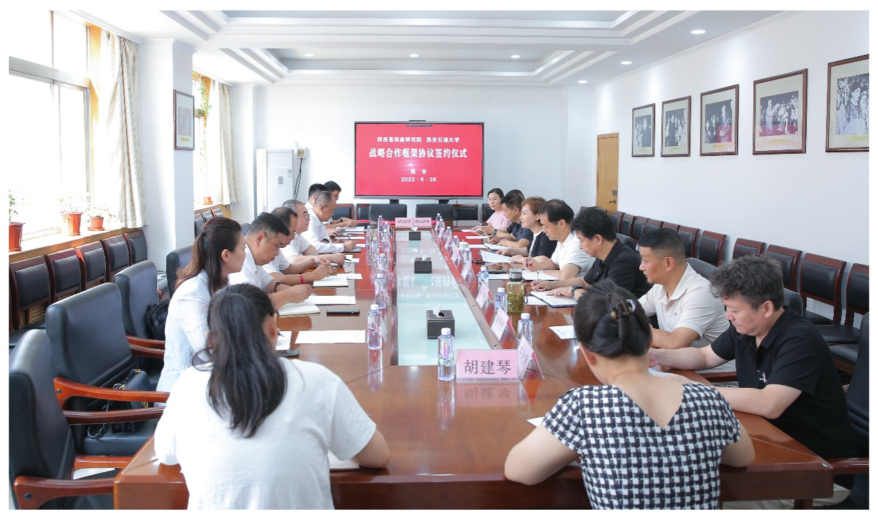 隨后,雙方舉行了座談及簽約儀式。在交流座談環(huán)節(jié),雙方圍繞合作內(nèi)容與未來(lái)規(guī)劃進(jìn)行了深入交流。常江在講話中指出,西安石油大學(xué)作為以石油石化為特色的高校,始終堅(jiān)持“石油精神辦學(xué)、鐵人精神育人、延安精神鑄魂”,在強(qiáng)化能源主干學(xué)科的同時(shí),高度重視人文藝術(shù)教育對(duì)人才培養(yǎng)的重要作用,堅(jiān)持以中華傳統(tǒng)文化潤(rùn)心。他強(qiáng)調(diào),陜西省戲曲研究院作為西北地區(qū)規(guī)模最大、實(shí)力最強(qiáng)的藝術(shù)團(tuán)體,匯聚了眾多國(guó)家級(jí)非遺傳承人及戲曲名家,雙方此前已在“新時(shí)代?青春版”《長(zhǎng)征組歌》音樂(lè)黨課、舞臺(tái)劇《紅河谷》等活動(dòng)中積累了良好合作基礎(chǔ)。此次合作將重點(diǎn)在三個(gè)方面發(fā)力:一是強(qiáng)化雙方協(xié)同育人模式,以共建實(shí)踐基地、互派師資、共同開(kāi)發(fā)課程與工作坊等方式,積極推進(jìn)戲曲文化融入學(xué)生日常教育;二是深化文藝研究合作,聚焦秦腔藝術(shù)的挖掘整理、數(shù)字化保護(hù)與傳播、音樂(lè)創(chuàng)新等方向,協(xié)同開(kāi)展課題研究;三是完善平臺(tái)共建與資源共享機(jī)制,著力建設(shè)好趙季平音樂(lè)藝術(shù)館,聯(lián)合開(kāi)展展覽、展演、講座等文化活動(dòng)。