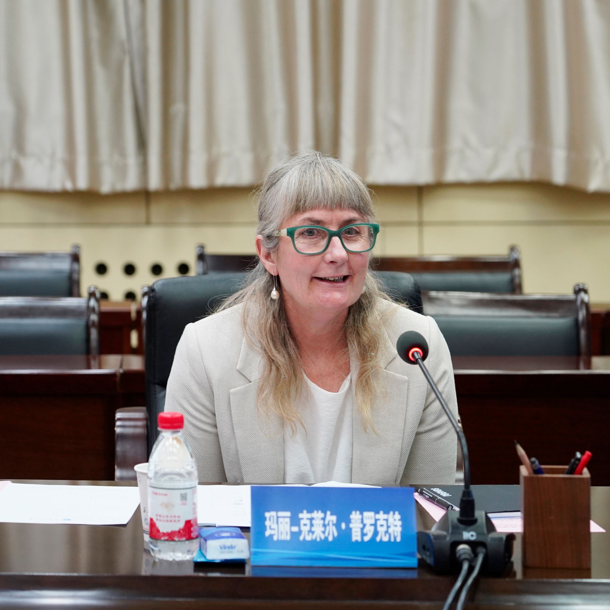 瑪麗-克萊爾·普羅克特對學(xué)校的熱情接待表示感謝。她表示,拓寬學(xué)生全球視野、提升學(xué)生學(xué)習(xí)能力、促進(jìn)多元文化交流是全球教育工作者的共同目標(biāo),這一共識為兩校開展務(wù)實合作奠定了堅實基礎(chǔ)。在中新兩國相互尊重、交流與合作背景下,兩校的友好合作將有利于豐富學(xué)生國際視野與文化體驗,為中新兩國區(qū)域發(fā)展做出積極貢獻(xiàn)。她表示,未來雙方可在教學(xué)資源建設(shè)、科學(xué)研究協(xié)同、師生雙向互訪等領(lǐng)域攜手共進(jìn),探索更多互利共贏的合作模式。