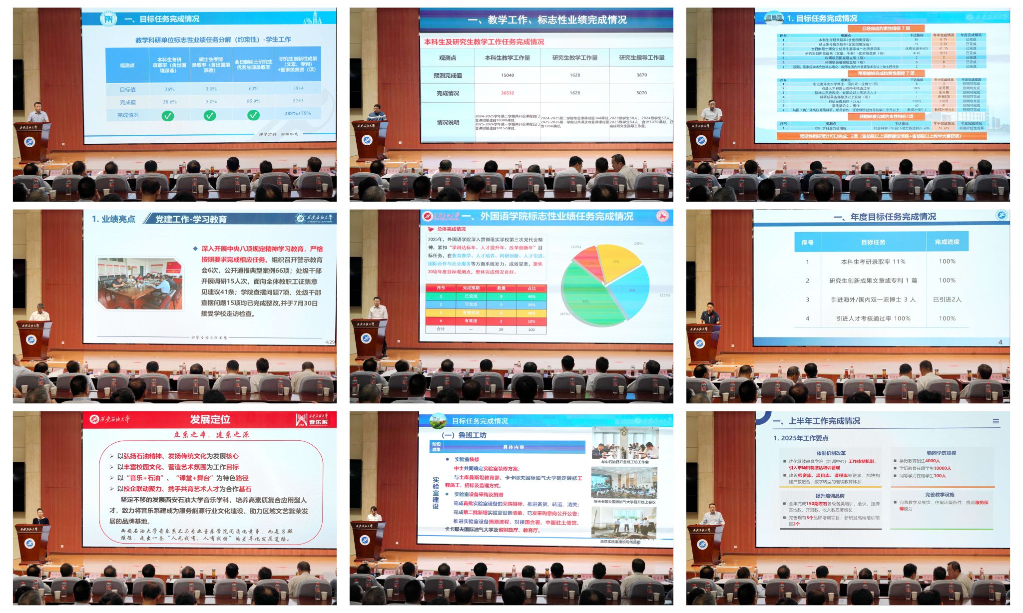 會(huì)上,20個(gè)院(系)和6個(gè)職能部門圍繞學(xué)校2025年度工作要點(diǎn),總結(jié)匯報(bào)了上半年目標(biāo)任務(wù)完成情況、特色亮點(diǎn)工作、存在的問題及下半年工作計(jì)劃。