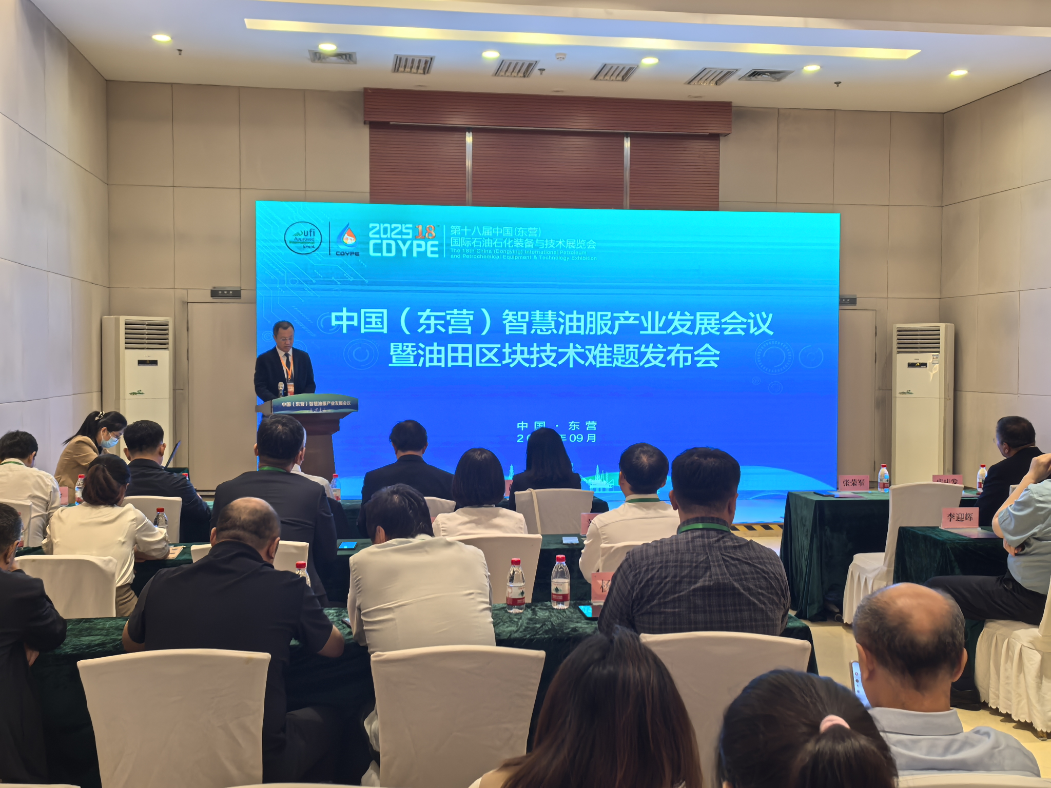在隨后進行的中國(東營)智慧油服產(chǎn)業(yè)發(fā)展論壇暨油田區(qū)塊技術難題發(fā)布會上,張榮軍代表參會高校向大會致辭。他談到,西安石油大學作為一所以石油石化為特色的高等學府,始終緊跟國家戰(zhàn)略步伐,肩負著推動能源行業(yè)創(chuàng)新發(fā)展的重任。多年來,西安石油大學與東營市、勝利油田及眾多能源企業(yè)保持著緊密的合作關系,共同開展技術攻關、共建科研平臺,推動了一批科技成果落地轉(zhuǎn)化。他指出,東營是一座因油而生、因油而興、因油而強的城市,是我國重要的石油工業(yè)基地和裝備制造高地。本次大會為我們進一步共同深化產(chǎn)學研合作、共促高質(zhì)量發(fā)展提供了重要平臺。期待大家在能源行業(yè)技術創(chuàng)新與智能化轉(zhuǎn)型、多學科交叉融合與復合型人才培養(yǎng)、產(chǎn)學研協(xié)同創(chuàng)新與成果高效轉(zhuǎn)化等方面開展全方位、多維度的交流探討,共同探索能源領域智能化轉(zhuǎn)型發(fā)展路徑,共同助力能源領域新質(zhì)生產(chǎn)力發(fā)展。他強調(diào),當前全球能源格局深刻變革,智慧油服已成為行業(yè)轉(zhuǎn)型升級的關鍵路徑。面向未來,西安石油大學愿繼續(xù)發(fā)揮學科與人才優(yōu)勢,與東營及廣大油服企業(yè)一道,在人工智能、CCUS、非常規(guī)油氣、新能源、新材料、能源裝備等領域深化合作,共同打造產(chǎn)學研用協(xié)同創(chuàng)新共同體,為保障國家能源安全、推動東營經(jīng)濟高質(zhì)量發(fā)展貢獻更多“西石大”力量。
