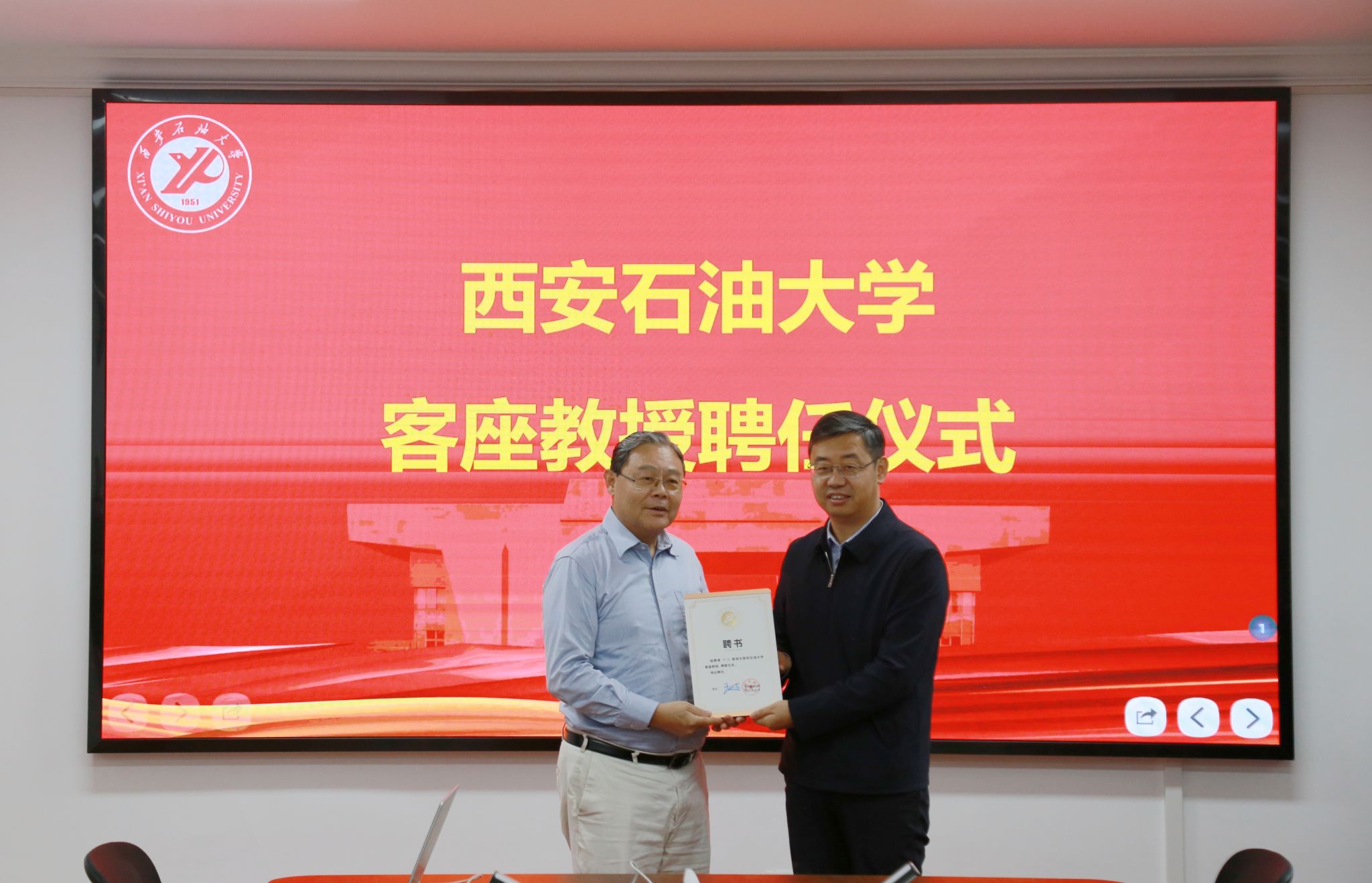 聘任儀式前,校長(zhǎng)王進(jìn)富在鄠邑校區(qū)貴賓室與鄒進(jìn)教授進(jìn)行了親切會(huì)談,對(duì)鄒教授的到來表示誠摯歡迎,并就學(xué)校紅色基因與石油精神傳承、校園文化建設(shè)、學(xué)科優(yōu)化布局、人才隊(duì)伍建設(shè)等方面進(jìn)行交流,期待鄒進(jìn)教授能夠充分發(fā)揮專業(yè)優(yōu)勢(shì)與學(xué)術(shù)國(guó)際影響力,提升學(xué)校學(xué)科發(fā)展水平。