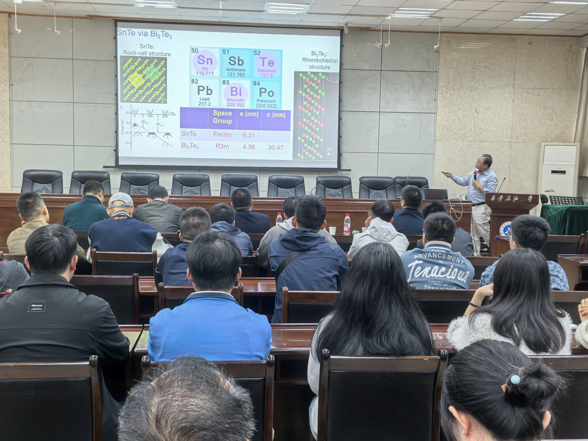 聘任儀式后,鄒進(jìn)教授為學(xué)校師生作了《先進(jìn)電子顯微學(xué)在納米材料中的應(yīng)用及Nanoscale,Nanoscale Advance期刊介紹》的學(xué)術(shù)報(bào)告。他結(jié)合自身近40年的研究實(shí)踐,深入淺出地介紹了透射電子顯微鏡、原位電子顯微技術(shù)等尖端表征手段的原理與發(fā)展,分享了其團(tuán)隊(duì)通過先進(jìn)電子顯微鏡技術(shù)在低維納米材料形態(tài)、微結(jié)構(gòu)和化學(xué)特性方面取得的研究成果。并就“透射電鏡(TEM)操作”“國(guó)際交流合作”等問題與現(xiàn)場(chǎng)師生進(jìn)行互動(dòng)。