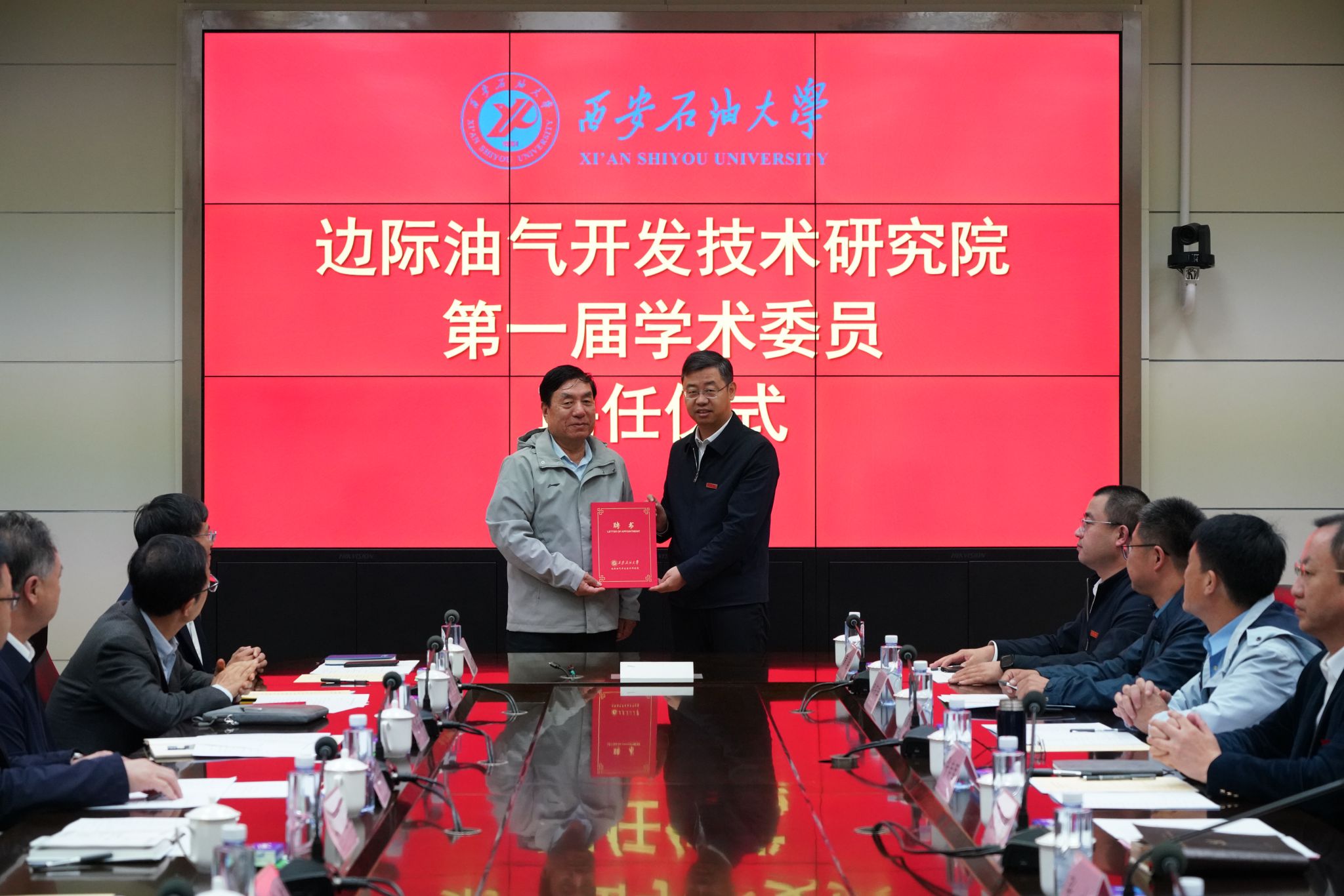 在隨后舉行的聘任儀式上,張木宣讀了《西安石油大學(xué)關(guān)于聘任第一屆邊際油氣開發(fā)技術(shù)研究院學(xué)術(shù)委員會委員的決定》,王進(jìn)富為李陽院士頒發(fā)了學(xué)術(shù)委員會主任委員聘書,李陽院士依次為各副主任委員、委員及秘書長頒發(fā)聘書?,F(xiàn)場掌聲雷動,氣氛熱烈。
