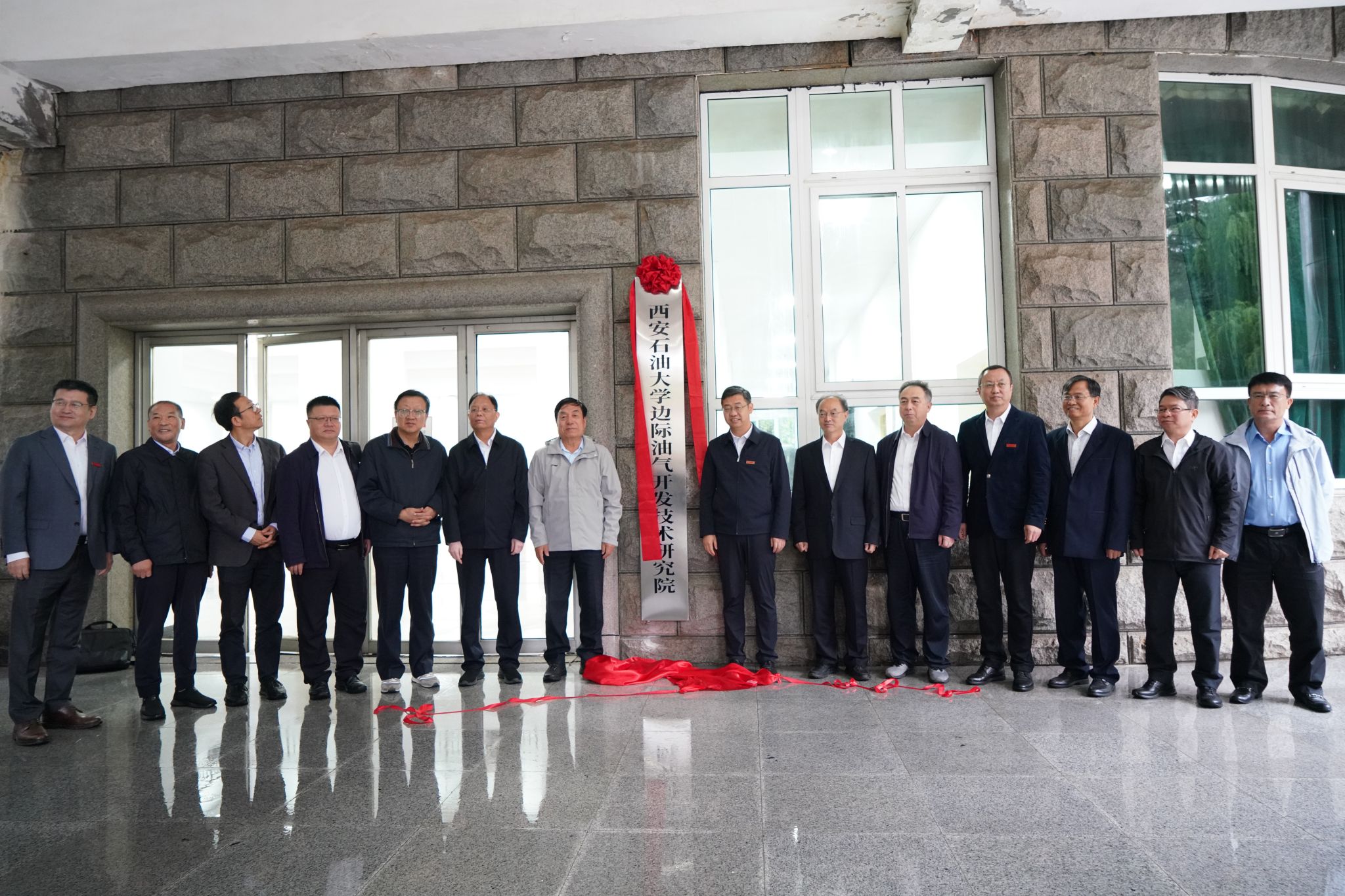 會后,在東階教學(xué)樓前舉行邊際油氣開發(fā)技術(shù)研究院揭牌儀式,全體與會人員合影留念。隨后,與會委員和嘉賓一同參觀了研究院實驗室。