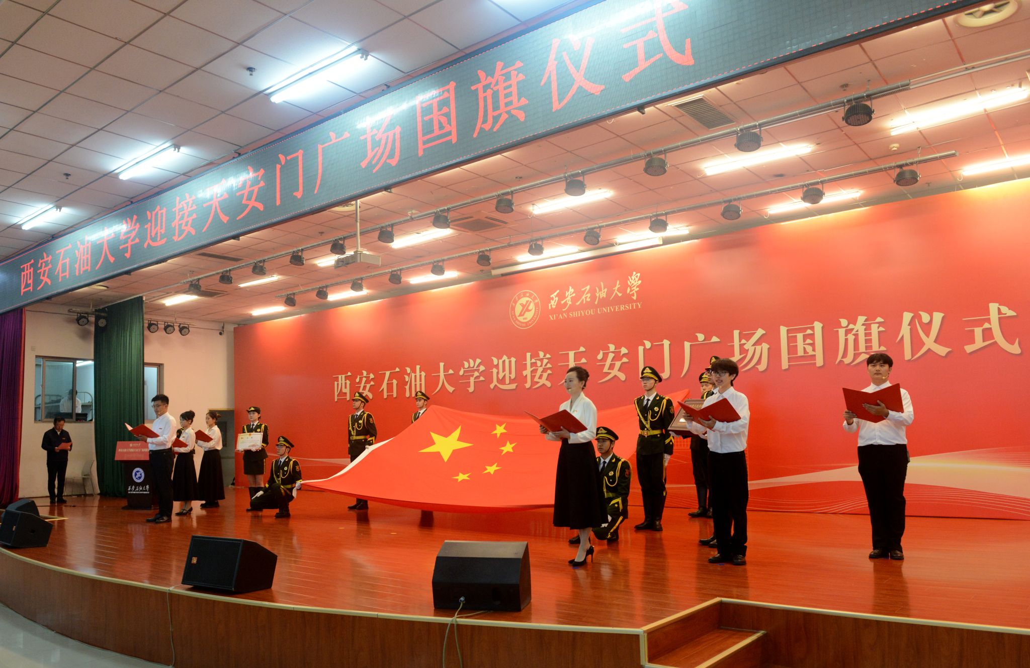 10月12日,時值西安石油大學(xué)74周年校慶日,我校在鄠邑校區(qū)騰輝大學(xué)生活動中心舉行迎接天安門廣場國旗儀式。一面曾于2021年10月12日,暨我校建校70周年校慶日,在天安門廣場升掛過的國旗,經(jīng)天安門地區(qū)管委會批準(zhǔn)贈予學(xué)校。全體校領(lǐng)導(dǎo)、處科級干部代表、民主黨派代表、校友代表及師生代表共計600余人參加儀式,儀式由副校長種宇宏主持。